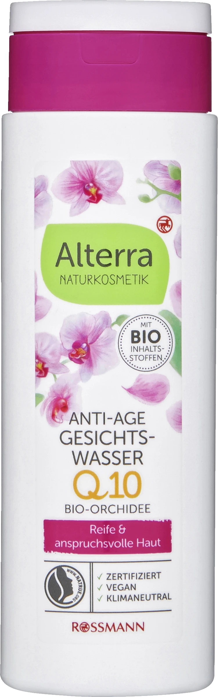 Das Alterra Gesichtswasser auf ein Wattepad geben und die gereinigte Haut von Gesicht, Hals und Dekolleté abtupfen.