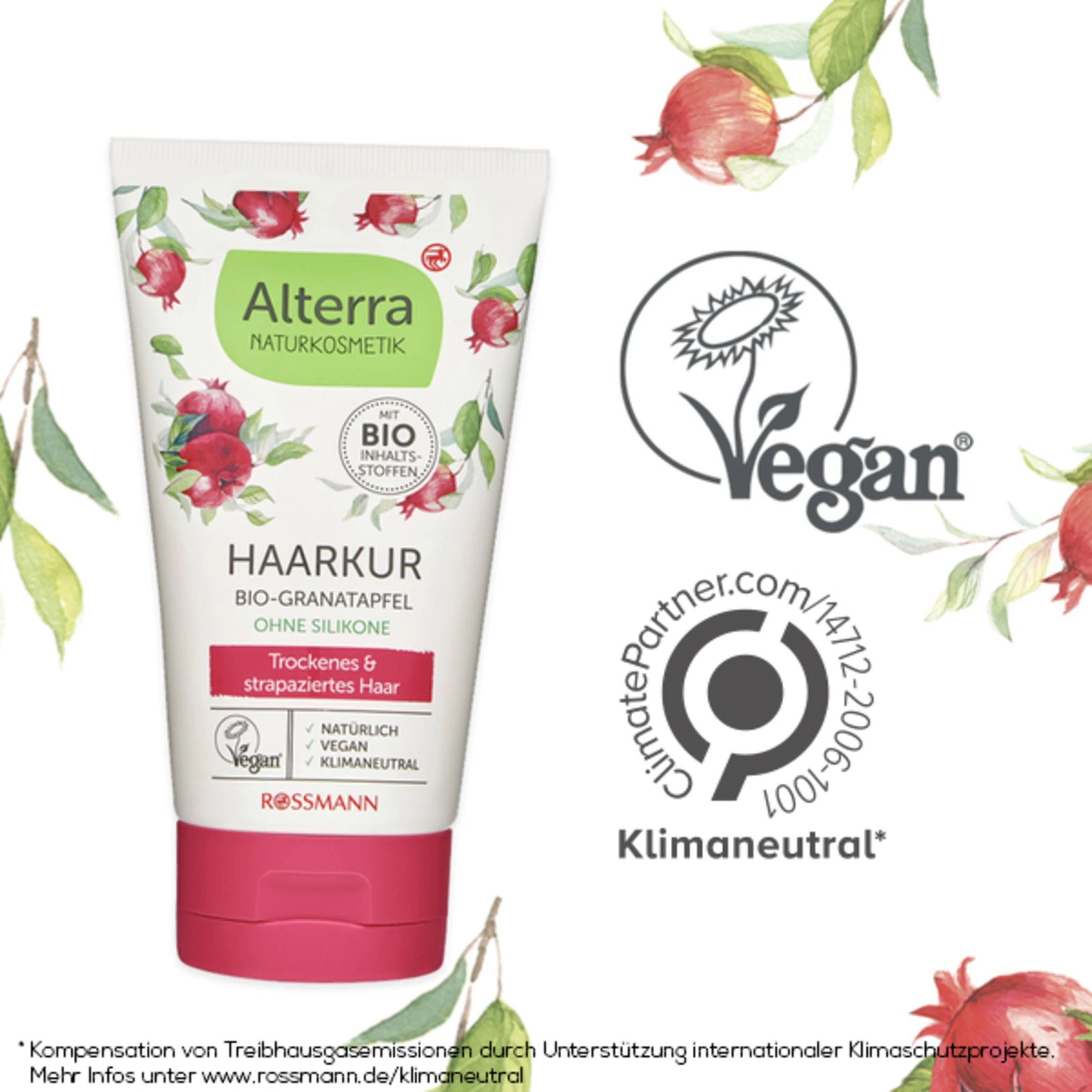 Nach dem Waschen im feuchten Haar verteilen, nach Bedarf einwirken lassen und anschließend gut ausspülen. Als optimale Ergänzung empfehlen wir Ihnen das Alterra Feuchtigkeits-Shampoo Bio-Granatapfel & Bio-Aloe Vera.