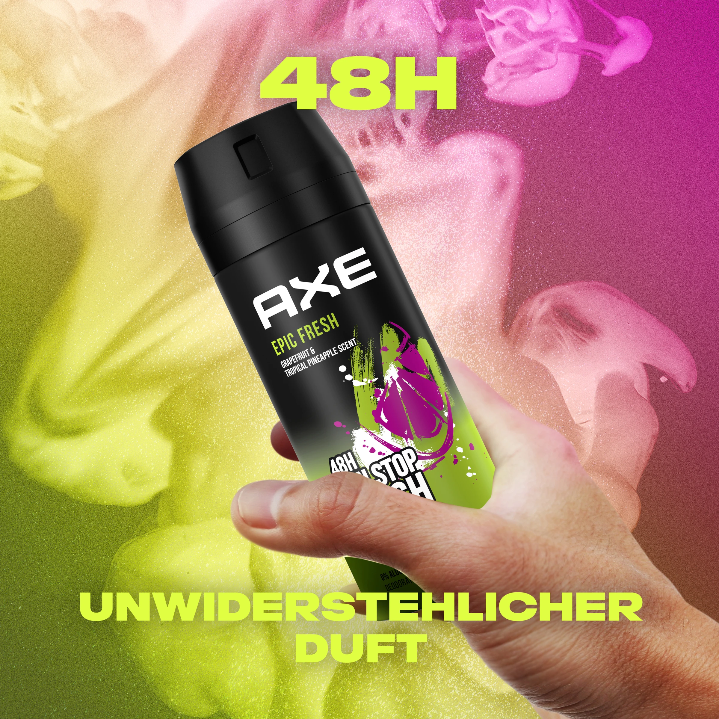 Wenn man sich frisch fühlt, fühlt man sich gut. Man wünscht sich nur, dass die Frische den ganzen Tag halten würde und man sich keine Sorgen darüber machen müsste, unangenehm zu riechen. Das neue AXE Bodyspray Epic Fresh gibt einem den Duft eines hochwertigen Parfums, hält aber den ganzen Tag. Mit einem Mix aus mediterranen Düften und tropischer Grapefruit, liefert es einen modernen und unwiderstehlich frischen Duft, der den ganzen Tag anhält. Man muss sich nicht mehr zwischen seinem Lieblingsduft und langanhaltender Frische entscheiden, das neue Axe Epic Fresh vereint beides.