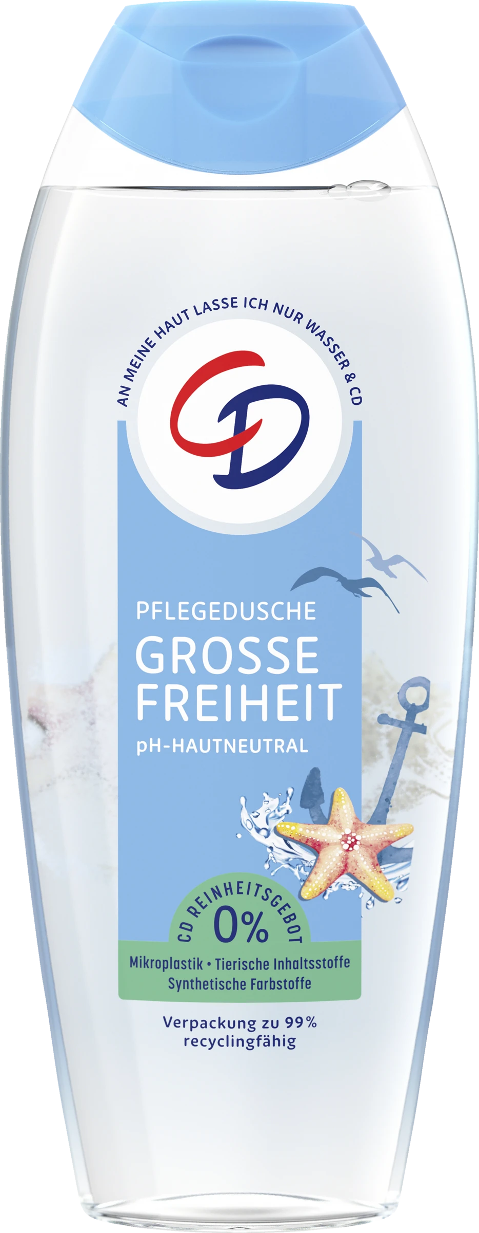 Die Pflegedusche Große Freiheit pflegt die Haut und erfrischt die Sinne. Der Duft nach einer frischen Brise erinnert an einen Tag am Meer.