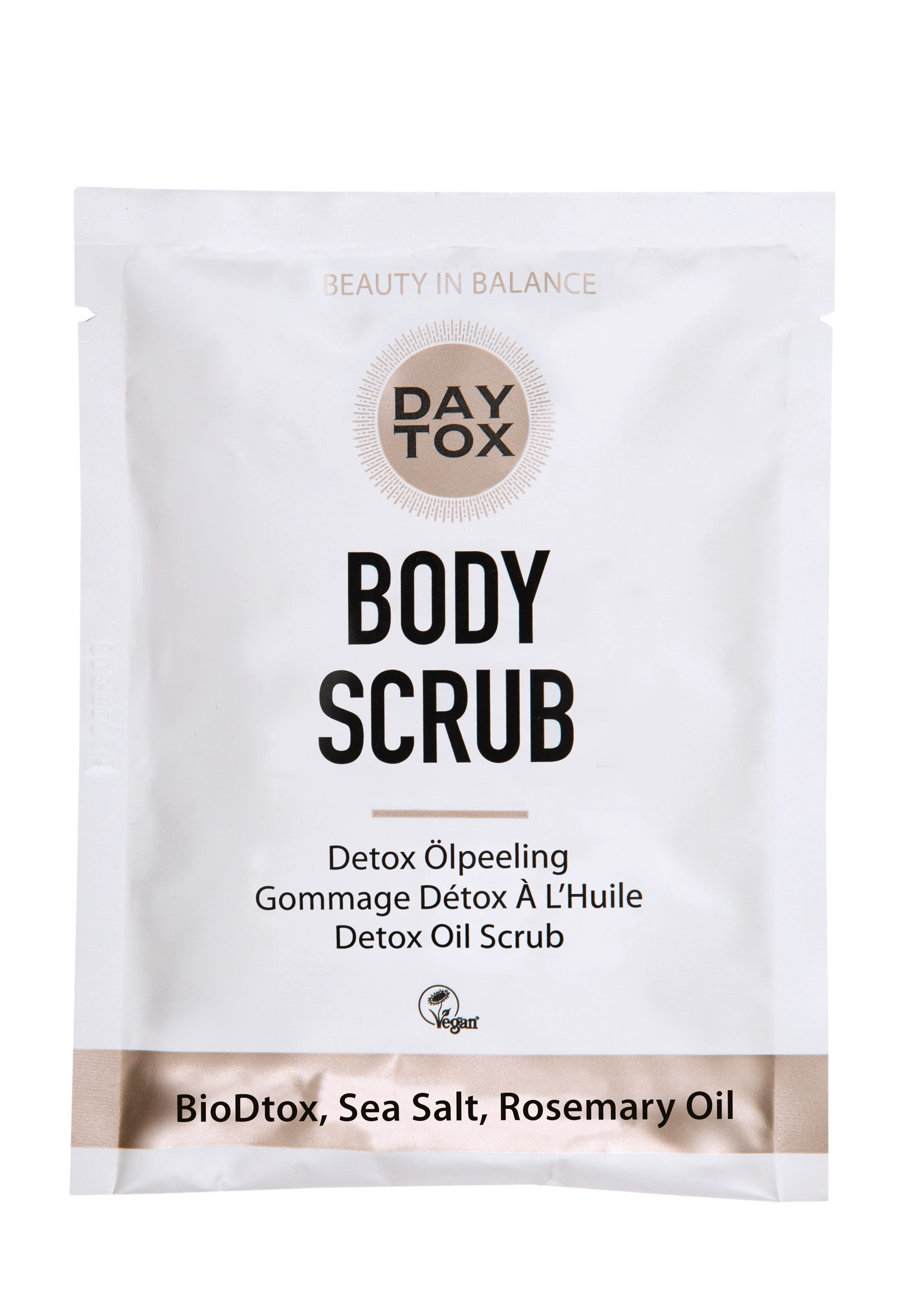 DAYTOX Body Scrub mit heilendem Meersalz lässt die Haut tief durchatmen. Die grobe Struktur reinigt die Haut und befreit sie sanft von losen Hautschüppchen. Jetzt ist der Weg frei für die wirksamen Antioxidantien, die mit zellerneuernder Wirkung tief in die Haut vordringen. Sanftes Mandelöl legt sich abschließend wie ein reizlindernder Schutzfilm um die Haut. Für ein glattes und rundum erneuertes Hautgefühl.