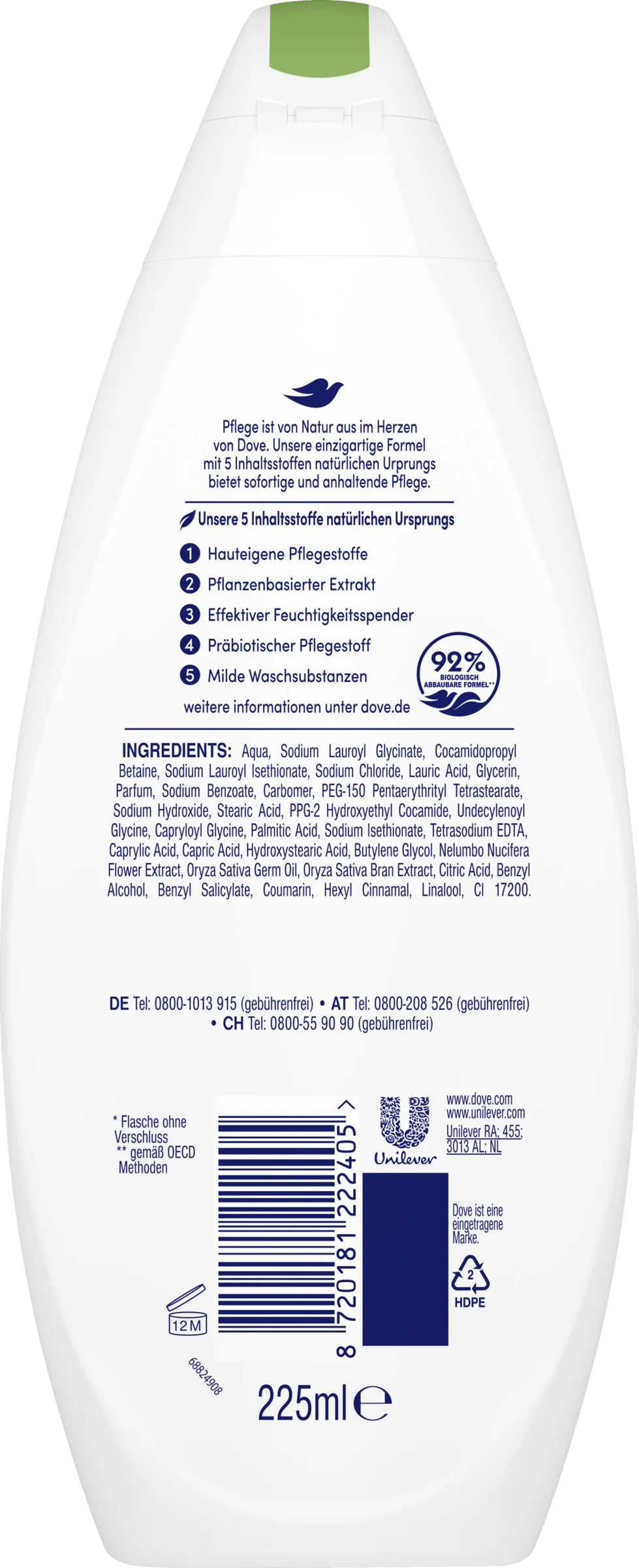 Pflege ist von Natur aus im Herzen von Dove. Die einzigartige Formel mit 5 Inhaltsstoffen natürlichen Ursprungs bietet sofort und anhaltende Pflege.