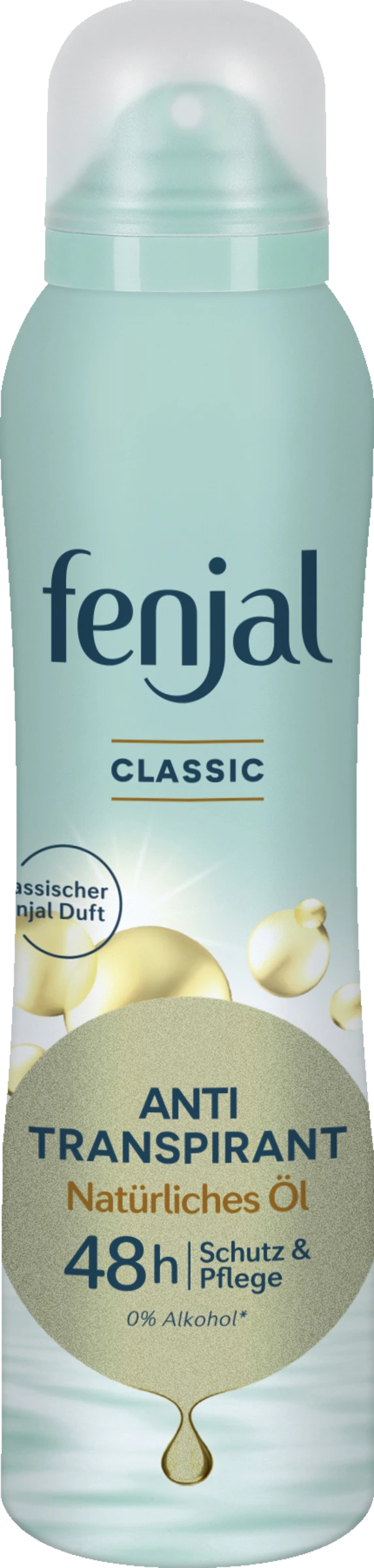 Das fenjal Anti-Transpirant Spray CLASSIC bietet 48 Stunden effektiven Schutz vor Körpergeruch und Achselnässe. Für ein langanhaltendes Frischegefühl sorgt dabei die desodorierenden Wirkung des beliebten und unverwechselbaren fenjal CLASSIC-Dufts, der sich sanft um einen legt und ein stetiger geheimnisvoller Begleiter ist. Angereichert mit wertvollem, natürlichem Mandelöl und hautberuhigendem Allantoin, hilft die milde Pflegeformel der empfindlichen Achselhaut sich schneller zu regenerieren – für ein samtweiches Hautgefühl. Zudem schützt die hochwirksame Formel dunkle Textilien vor weißen Rückständen und weiße Textilien vor gelben Flecken. Für ein langanhaltendes Frischegefühl und trockenere, gepflegte Achseln.