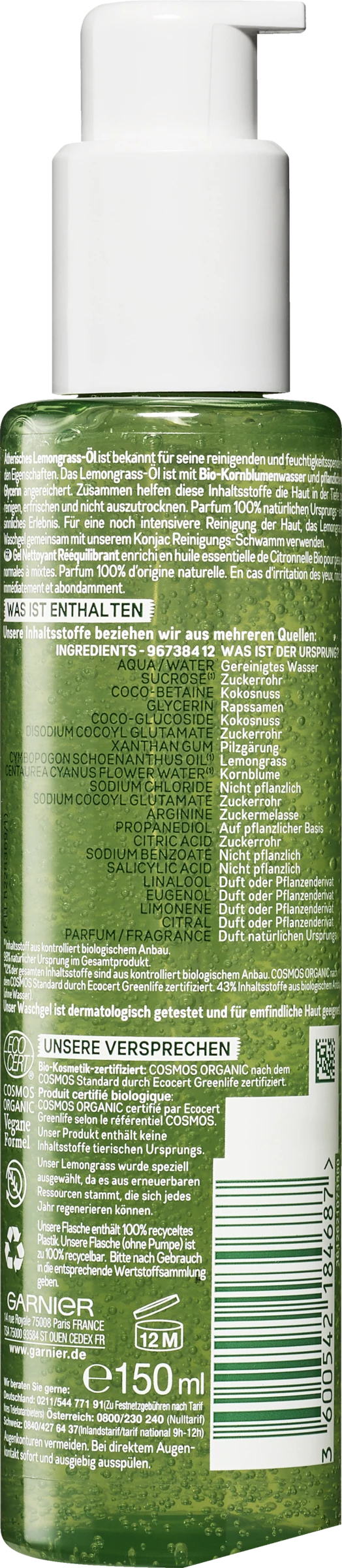 Perfekt für die tägliche Gesichtsreinigung nach dem Abschminken: Garnier Bio Lemongrass Belebendes Waschgel auf das angefeuchtete Gesicht auftragen und mit kreisenden Bewegungen einmassieren. Anschließend gründlich abspülen.