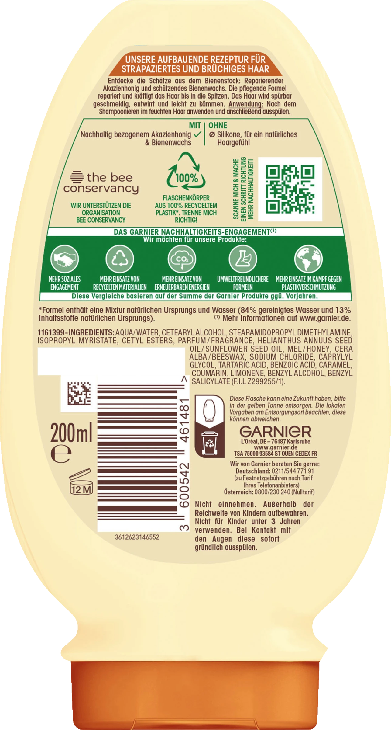 1161399 – INGREDIENTS: AQUA / WATER • CETEARYL ALCOHOL • STEARAMIDOPROPYL DIMETHYLAMINE • ISOPROPYL MYRISTATE • CETYL ESTERS • PARFUM / FRAGRANCE • HELIANTHUS ANNUUS SEED OIL / SUNFLOWER SEED OIL • MEL / HONEY • CERA ALBA / BEESWAX • SODIUM CHLORIDE • CAPRYLYL GLYCOL • TARTARIC ACID • BENZOIC ACID • CARAMEL • COUMARIN • LIMONENE • BENZYL ALCOHOL • BENZYL SALICYLATE (F.I.L. Z299255/1).