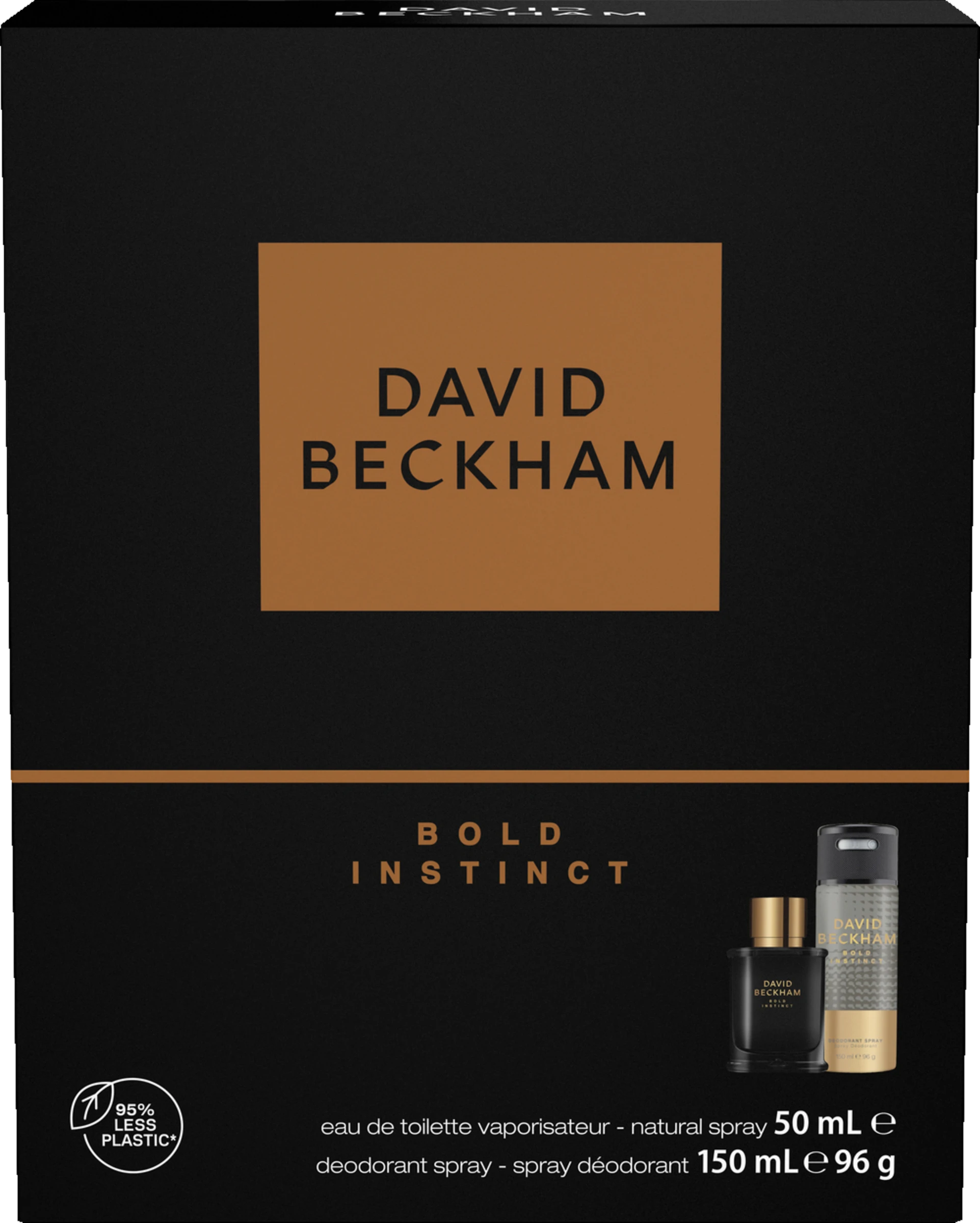 Dieses David Beckham Bold Instinct Geschenkset für Ihn enthält ein Eau de Toilette 30 ml und ein Deodorant 150 ml. Das Eau de Toilette Bold Instinct ist eine Erweiterung der David Beckham Duft-Reihe und ist ebenso kraftvoll wie elegant und vermittelt Selbstvertrauen und Überzeugung. Der kühn ausgewogene Duft öffnet mit einer frischen Fusion aus saftiger Ananas und Lorbeerblättern. Im Herzen enthüllt der Duft die raffinierte Wärme von Muskatnuss mit Zimtnoten und einem Hauch von süßem Kardamom. Die äußerst maskuline Basisnote zeichnet sich durch langanhaltenden Ambra und Moschus aus, die durch intensives Patschuli verstärkt werden. Das Geschenkset wurde im Vergleich zu unseren Geschenksets aus dem Jahr 2020 mit 93% weniger Plastik verpackt.