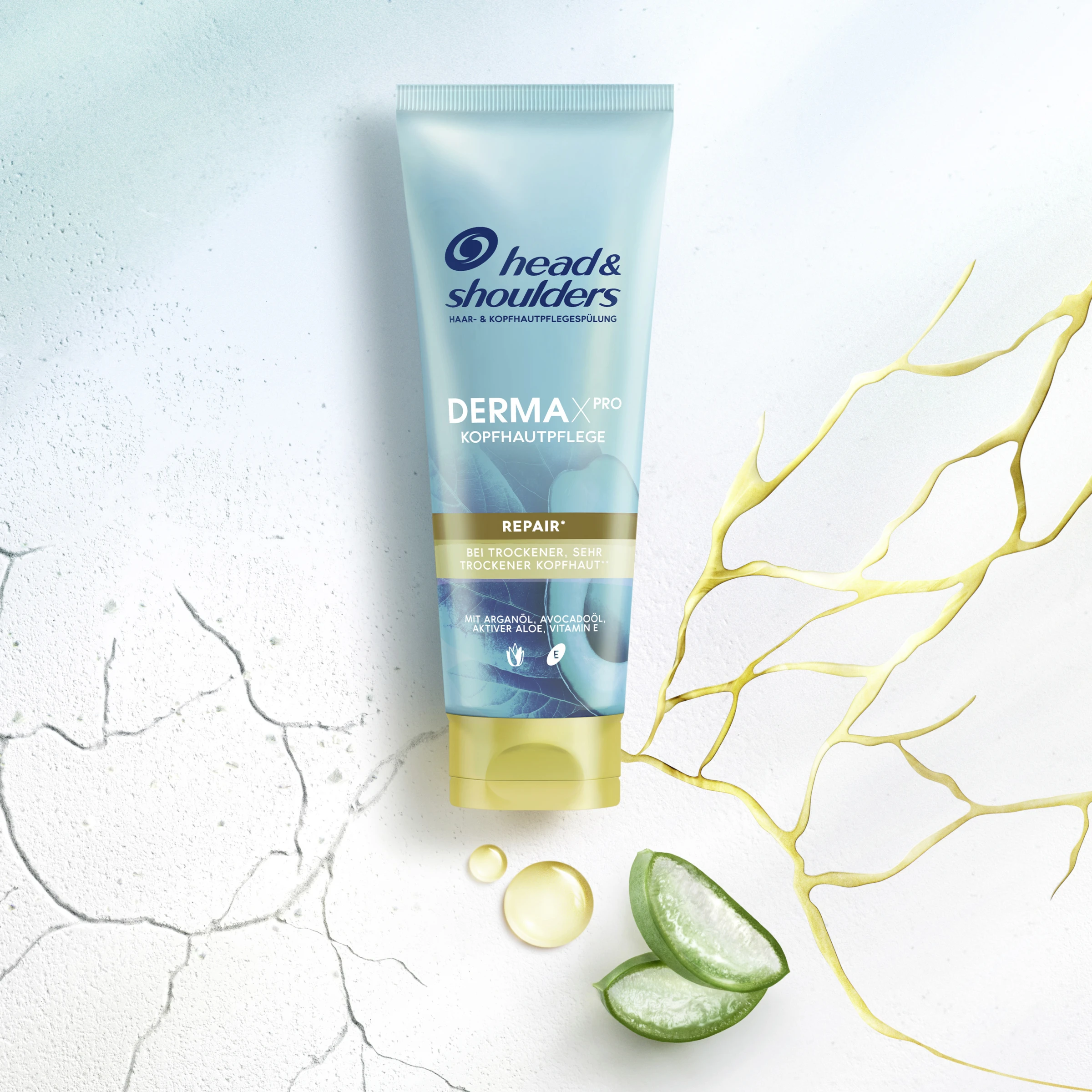 Wussten Sie, dass trockene, sehr trockene Kopfhaut mehr als nur Feuchtigkeit benötigt? Head & Shoulders DERMAXPRO Repair* Haar- & Kopfhautpflegespülung wirkt am Besten gemeinsam mit dem Anti-Schuppen Shampoo und spenden Haar und Kopfhaut ultimative Feuchtigkeit. Unsere feuchtigkeitsspendende Formel ist mit den hautpflegenden Substanzen Arganöl, Avocadoöl, aktiver Aloe und Vitamin E angereichert und basiert auf dem klinisch getesteten Wirkstoff Pirocton Olamin. Das Ergebnis? Eine mit Feuchtigkeit versorgte, schuppenfreie** Kopfhaut.