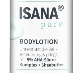 Die ISANA PURE BODYLOTION mit 5% AHA-Komplex verwöhnt die Haut mit ihrer cremig leichten Textur. Der enthaltene AHA-Säure-Komplex hilft, abgestorbene Hautzellen, sanft zu entfernen und unterstützt die Erneuerungsprozesse der Haut – für eine ebenmäßigeres und verfeinertes Hautbild. Die Formulierung mit pflanzlichem Gylcerin sowie pflegenden Lipiden aus Shea- und Kokosnuss hilft, die natürliche Feuchtigkeitsbalance der Haut zu bewahren. Diese fühlt sich nach der Anwendung wunderbar seidig und geschmeidig an.