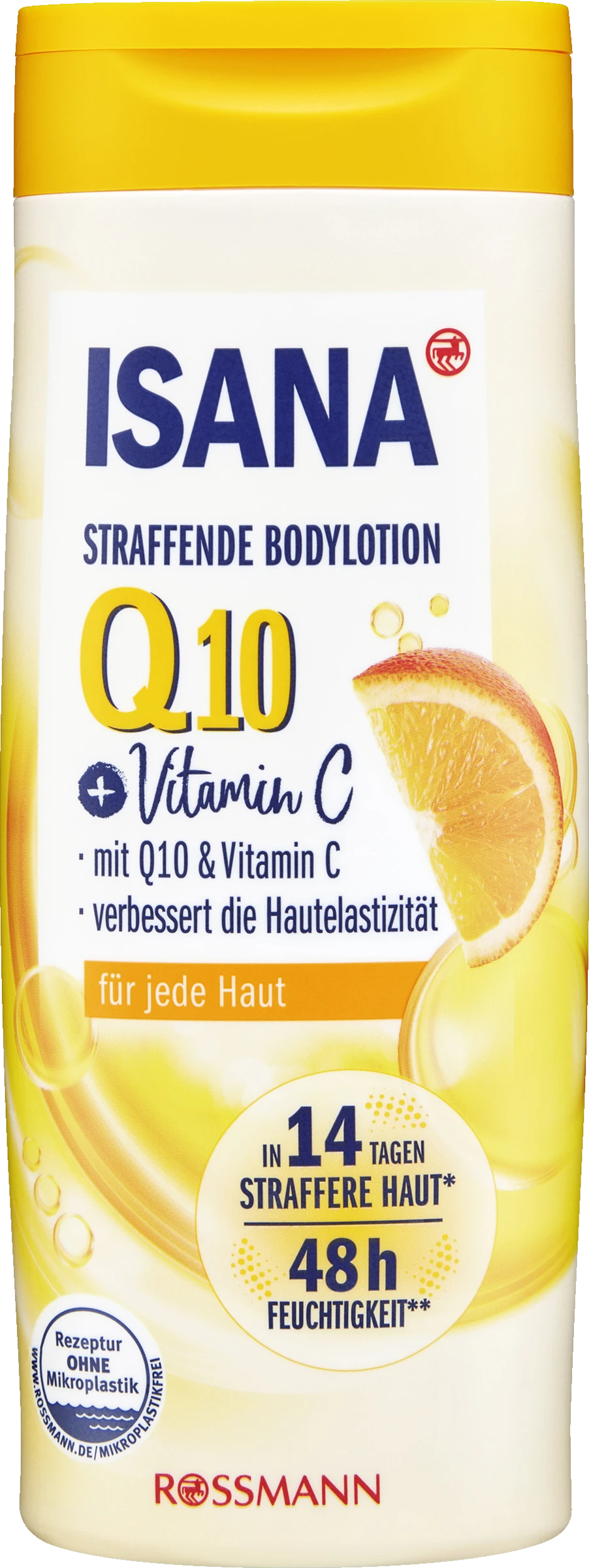 Die ISANA STRAFFENDE BODYLOTION Q10 wurde speziell entwickelt um die Elastizität der Haut zu verbessern. Die ausgewählte Formulierung mit wertvollem Q10, Coffein und Cranberry-Extrakt erfrischt Ihre Haut und versorgt sie 24h lang mit Feuchtigkeit. Die Feuchtigkeitspflege verleiht sofort ein geschmeidig-weiches Hautgefühl und zieht schnell ein ohne einen Fettfilm zu hinterlassen. Die Haut fühlt sich spürbar gepflegt und glatt an.In 14 Tagen straffere Haut* Hautverträglichkeit dermatologisch bestätigt. Für eine festere und straffere Haut. *Nach 14 Tagen: Verbesserte Elastizität der Haut bei über 90% der Anwenderinnen. Nach 28 Tagen: Verbesserte Festigkeit der Haut bei 95% der Anwenderinnen. Wirksamkeitstest mit 20 Probandinnen bei 2 mal täglicher Anwendung.