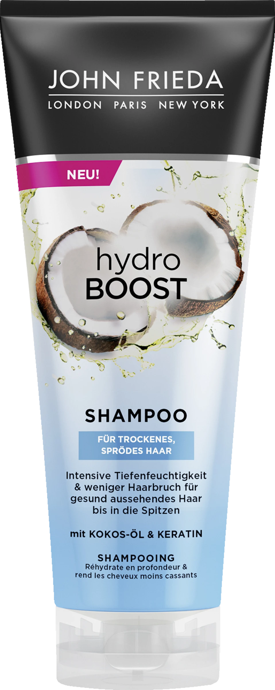 Schenke trockenem Haar einen sofortigen Feuchtigkeits-Kick. Dieses Shampoo angereichert mit Kokos-Öl und Keratin, reinigt das Haar und reduziert Haarbruch für bis in die Spitzen geschmeidiges und gepflegtes Haar.
