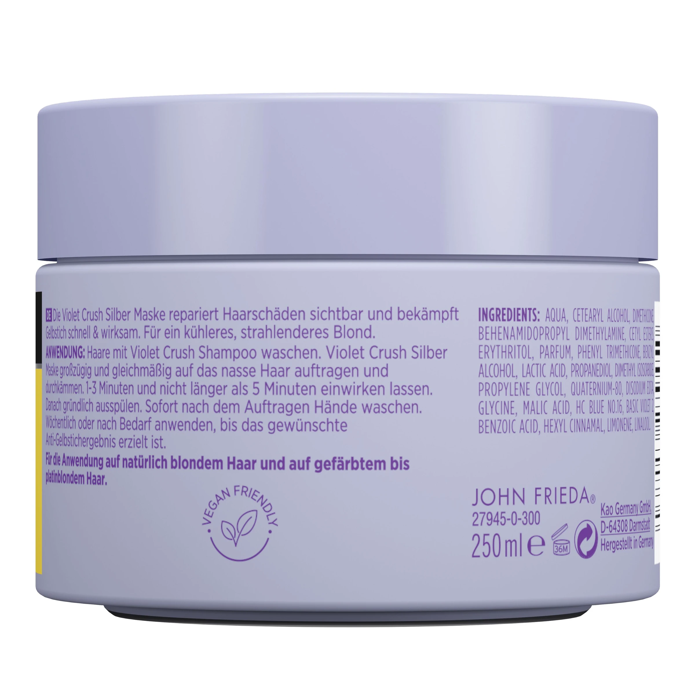 Die Violet Crush Silber Maske repariert Haarschäden sichtbar und bekämpft Gelbstich schnell & wirksam. Für ein kühleres, strahlenderes Blond.