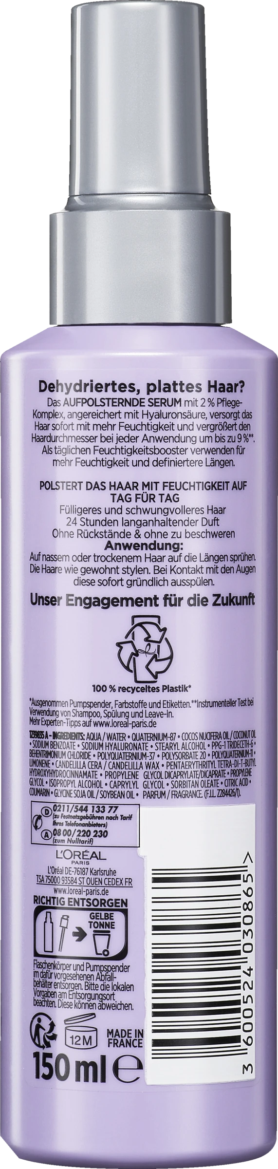 Auf nassem oder trockenem Haar auf die Längen sprühen. Die Haare wie gewohnt stylen. Bei Kontakt mit den Augen diese sofort gründlich ausspülen.