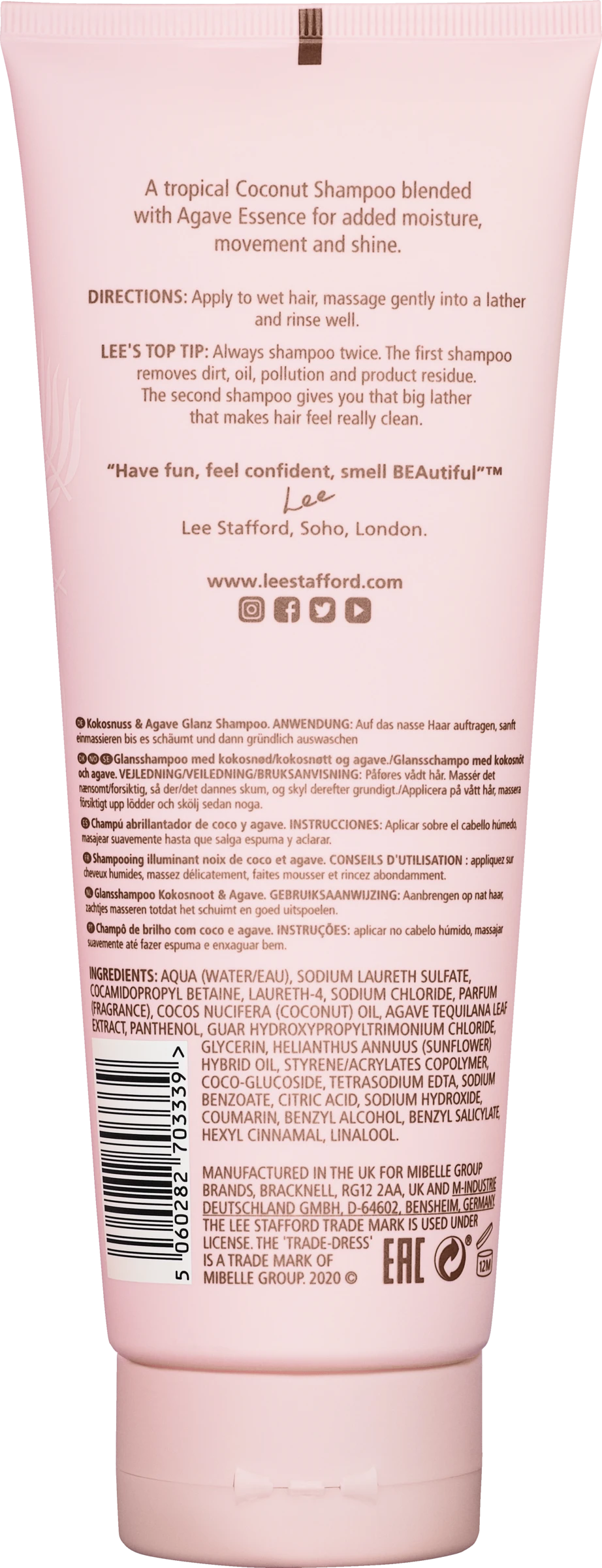 Aqua (Water/Eau), Sodium Laureth Sulfate, Cocamidopropyl Betaine, Laureth-4, Sodium Chloride, Parfum (Fragrance),Cocos Nucifera (Coconut) Oil, Agave Tequilana Leaf Extract, Panthenol, Guar Hydroxypropyltrimonium Chloride,Glycerin, Helianthus Annuus (Sunflower) Hybrid Oil, Styrene/Acrylates Copolymer, Coco-Glucoside, Tetrasodium EDTA,Sodium Benzoate, Citric Acid, Sodium Hydroxide, Coumarin, Benzyl Alcohol, Benzyl Salicylate, Hexyl Cinnamal, Linalool.