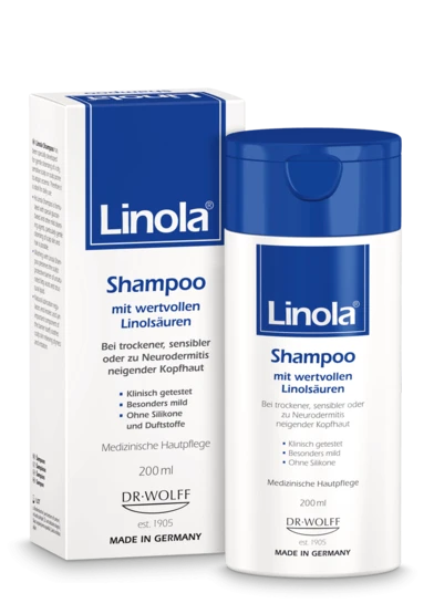 Linola Shampoo ist bestens abgestimmt auf die speziellen Bedürfnisse trockener, sensibler oder zu Neurodermitis neigender Haut. Deshalb können Sie Linola Shampoo wie gewohnt, d. h. natürlch auch täglich, anwenden.