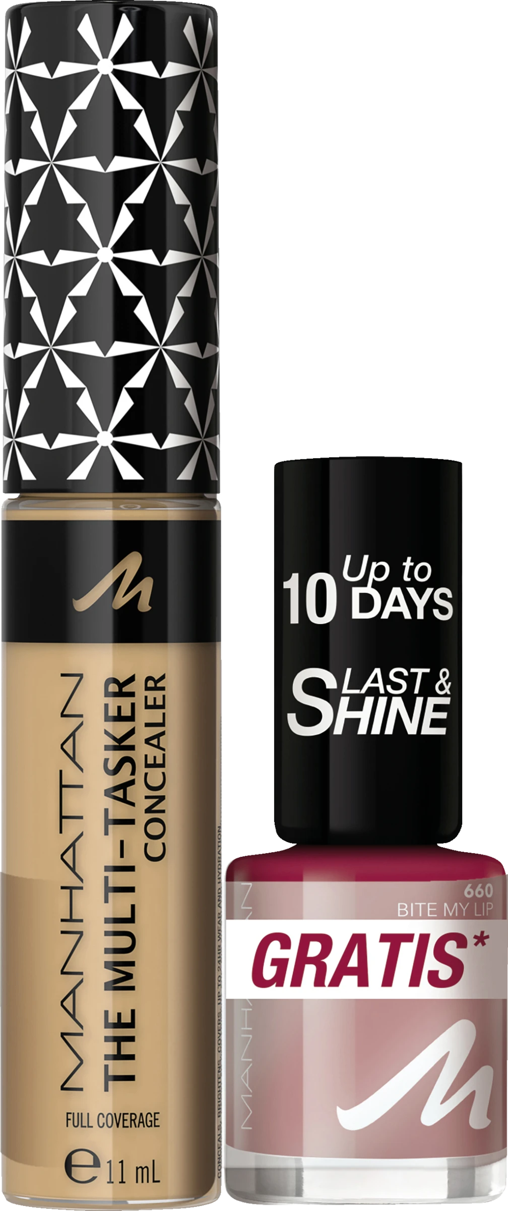 Multitasking funktioniert nicht? Wir beweisen dir das Gegenteil: Der Manhattan Multi-Tasker Concealer deckt Hautunreinheiten ab, hellt Augenringe auf und gleicht den Hautton aus – alles gleichzeitig, im ganzen Gesicht. Mit dem supergroßen Soft-Touch-Applikator mit integriertem Make-Up-Reservoir trägst du den Multi-Tasker Concealer auch großflächig auf und frischst so ganz easy dein Make-Up auf. Die aufbaubare, hochpigmentierte Formel lässt sich leicht verblenden, verschmilzt perfekt mit deiner Haut und versorgt sie nachhaltig mit Feuchtigkeit. Das Ergebnis: ein glatter, ebenmäßiger und strahlender Teint. Der Multi-Tasker ist außerdem wischfest, wasserresistent und hält den ganzen Tag – einfach der perfekte All-in-One-Concealer auch für unterwegs.