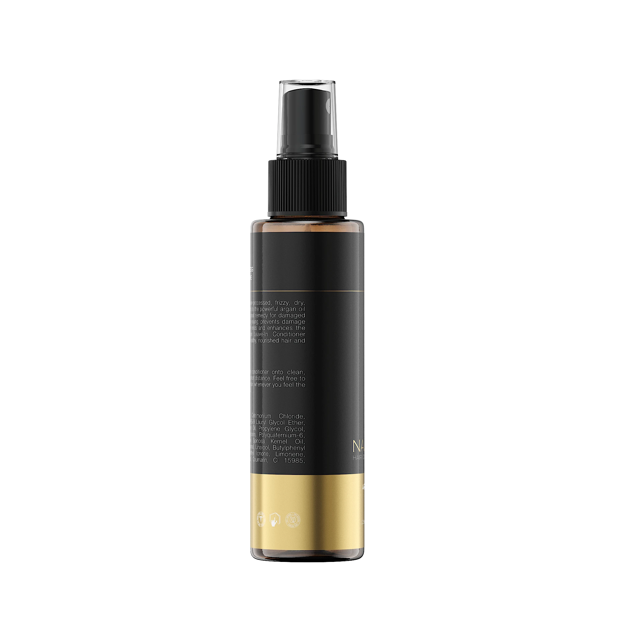 Aqua, Cyclopentasiloxane, Cetrimonium Chloride, Glycerin, Coceth-7, PPG-1-PEG-9 Lauryl Glycol Ether, PEG-40 Hydrogenated Castor Oil, Propylene Glycol, Argania Spinosa Kernel Oil, Olus Oil, Tocopherol, Panthenol, Polyquaternium-6, Cyclohexasiloxane, Cyclotetrasiloxane, Parfum, Benzophenone-4, Phenoxyethanol, Ethylhexylglycerin, Hexyl Cinnamal, Linalool, Limonene, Alpha-Isomethyl Ionone, Citronellol, Coumarin, Hydroxycitronellal, CI 15985, Sodium Sulfate.