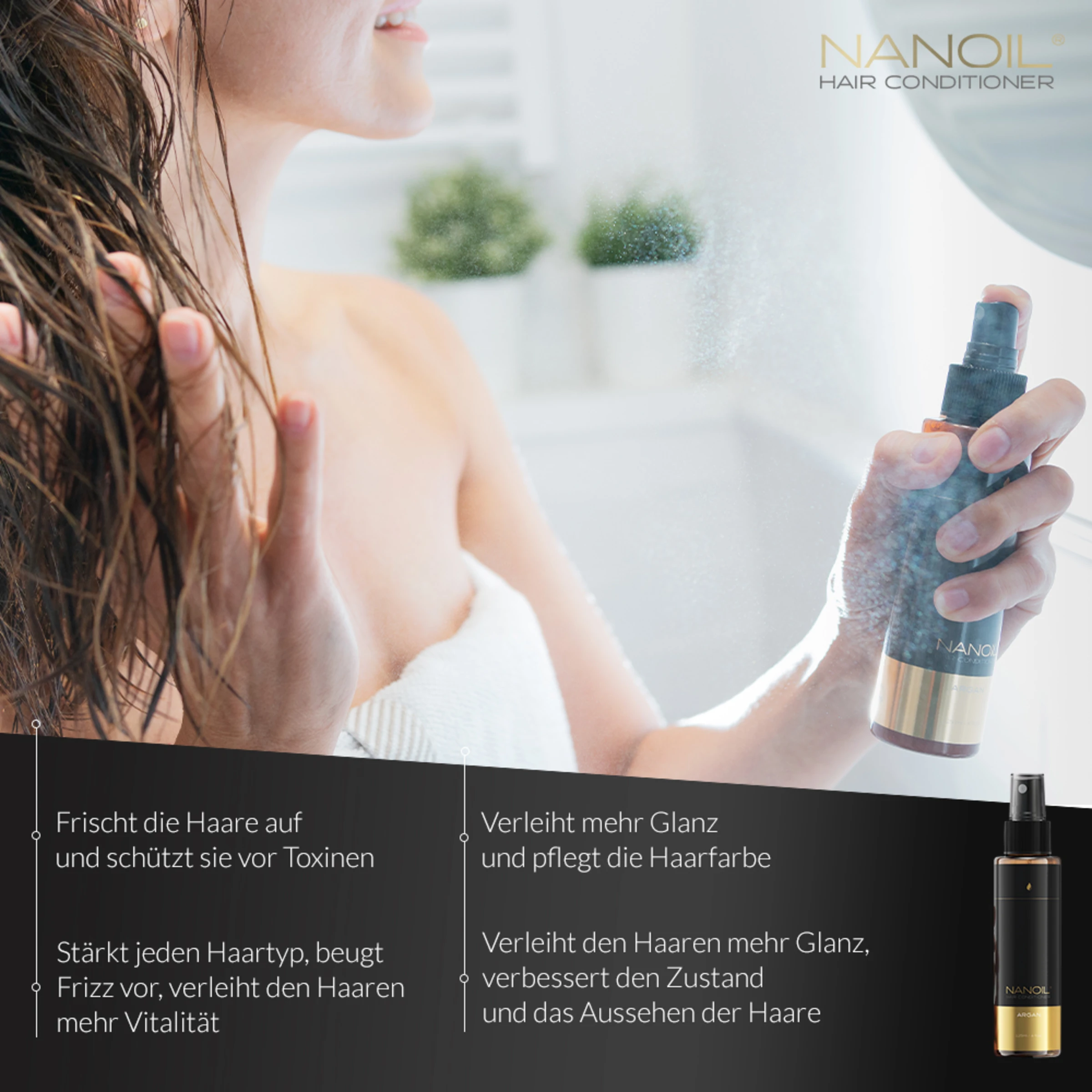 Nanoil Haar Conditioner mit Arganöl – gönnen Sie sich gepflegte, schöne Haare wie nach dem Friseurbesuch.