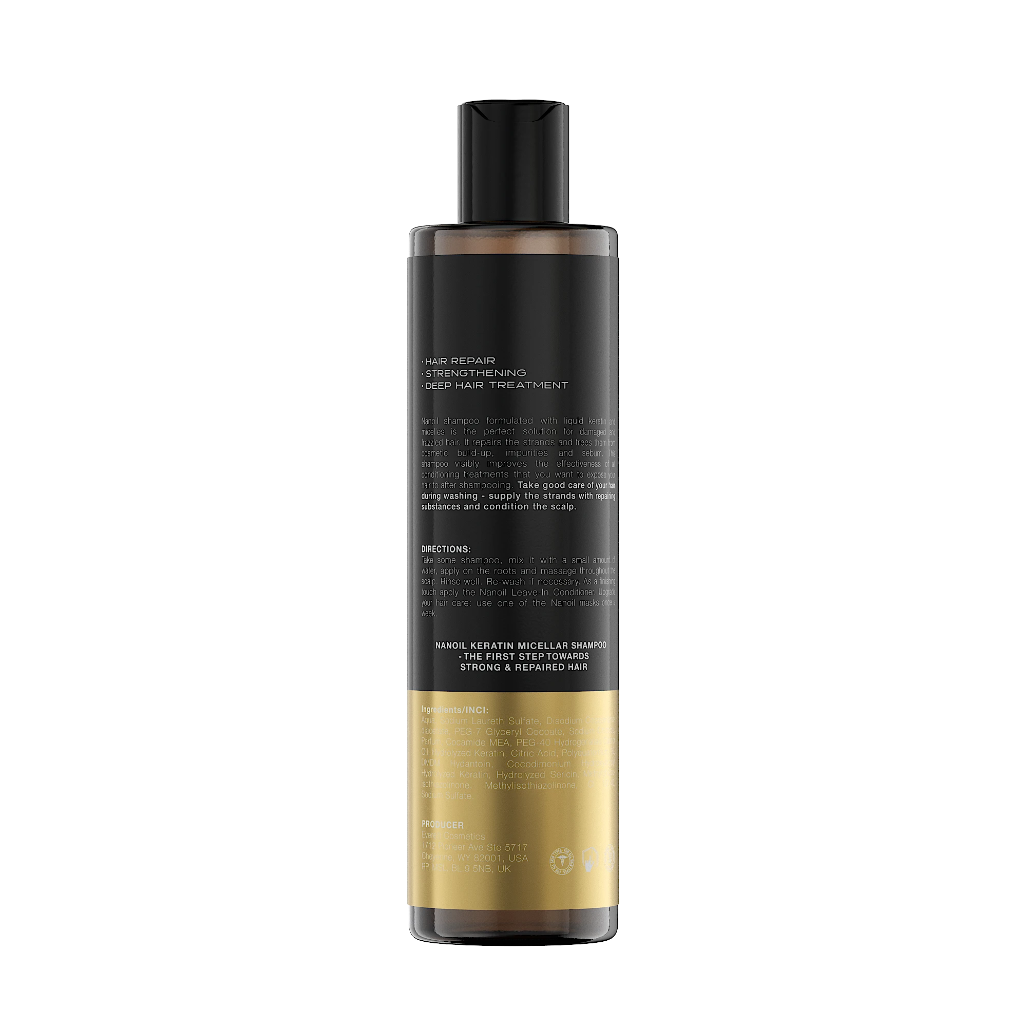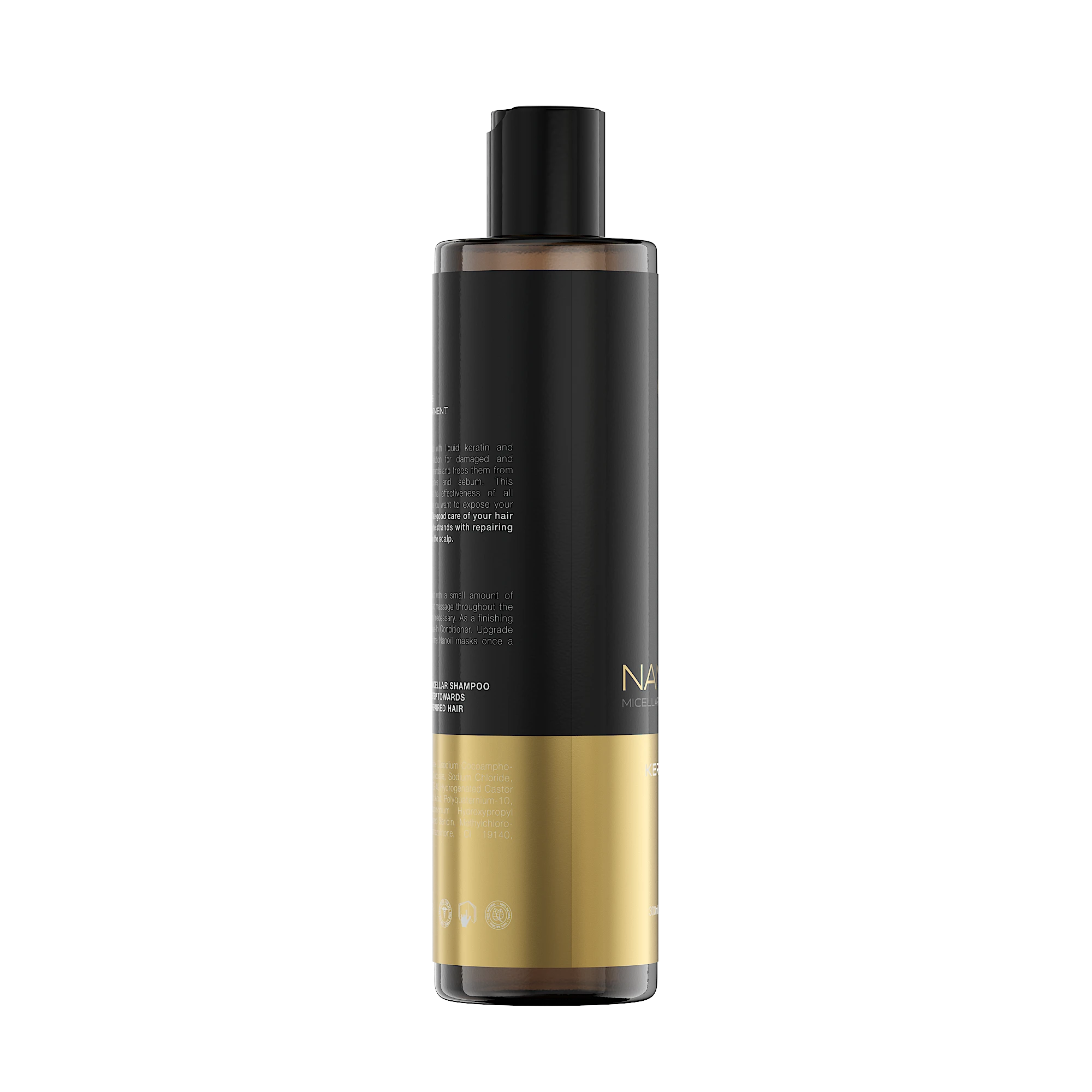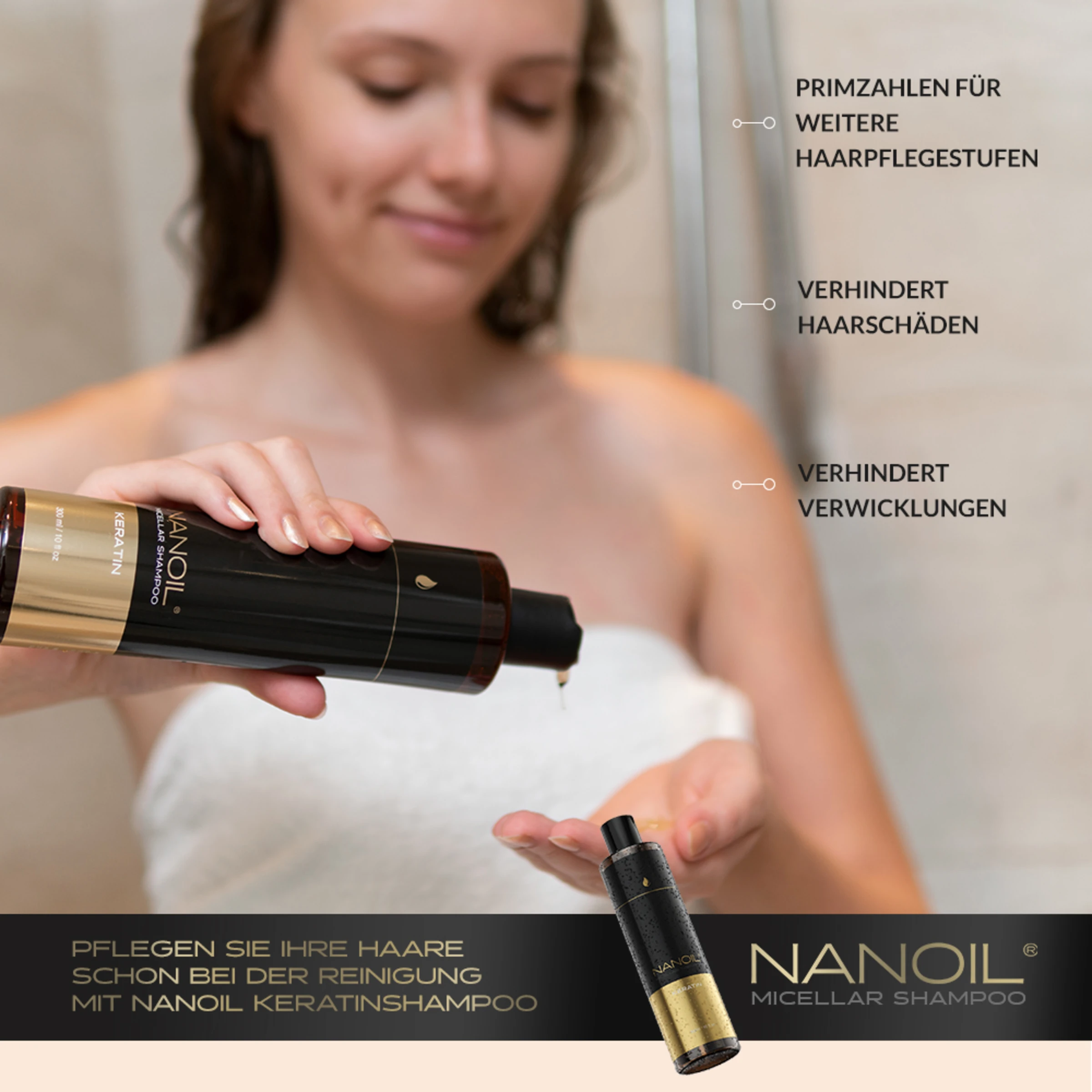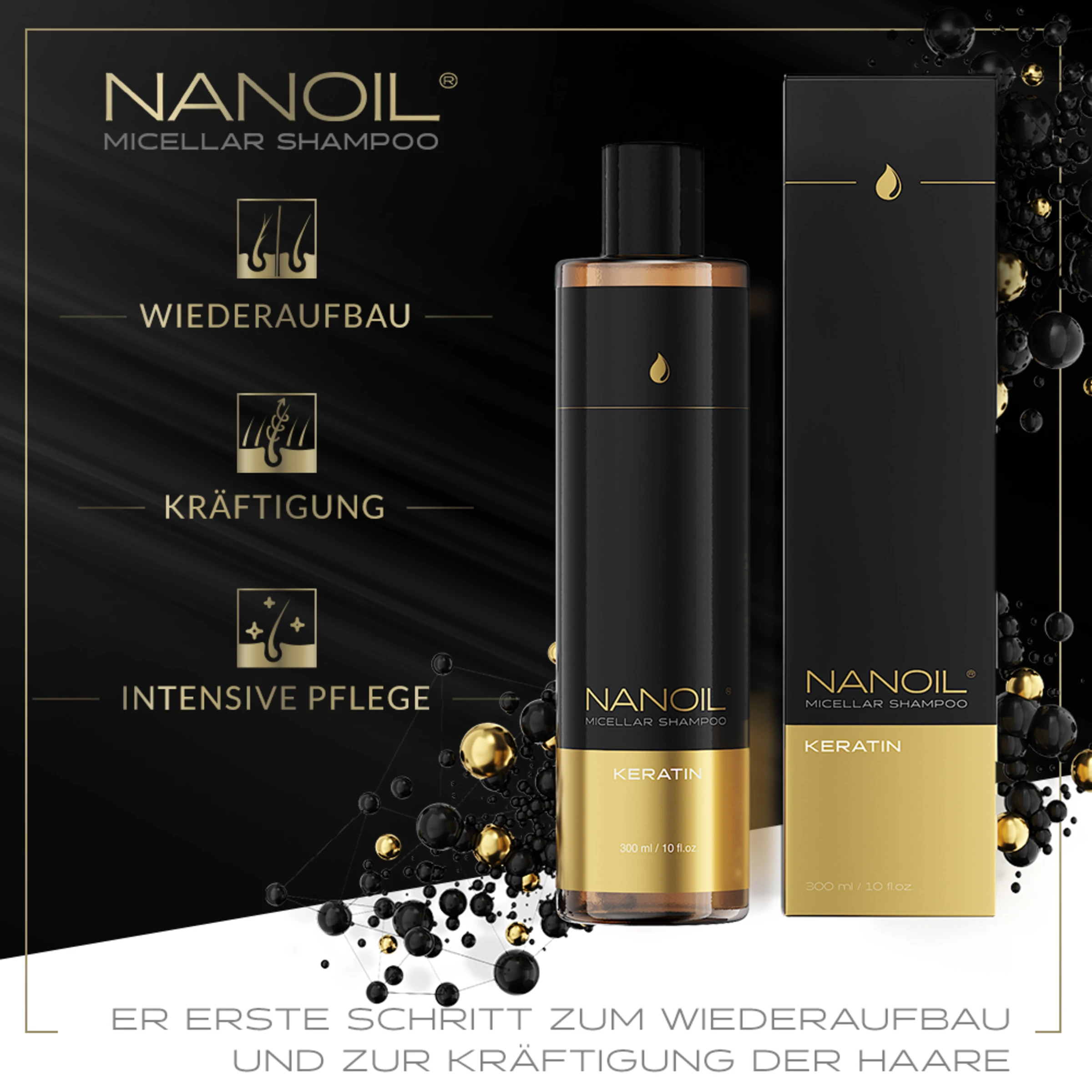 Nanoil Mizellenshampoo mit Keratin – der erste Schritt zum Wiederaufbau und zur Kräftigung der Haare.