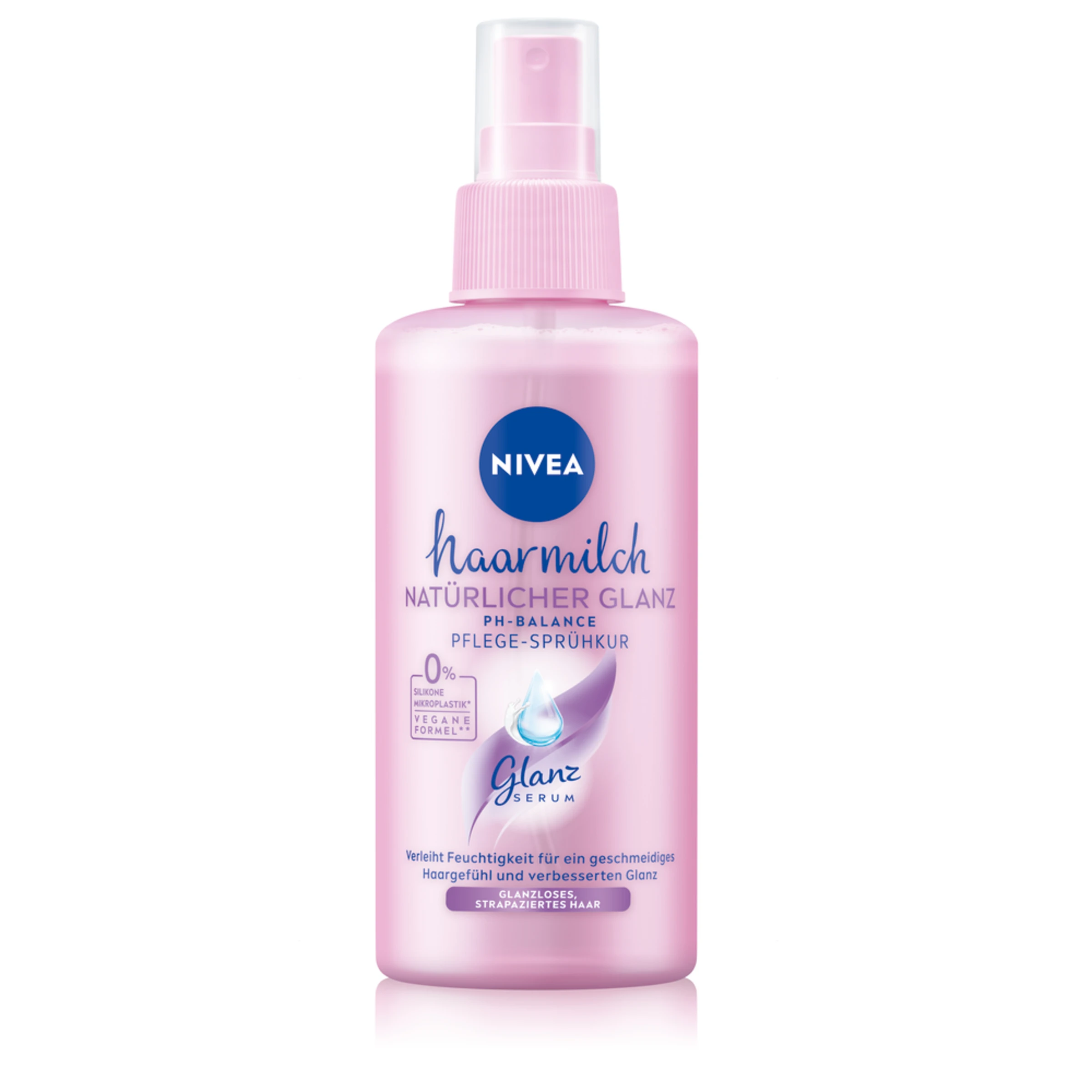 Spende Deinem Haar Feuchtigkeit für einen geschmeidigen Look und strahlenden, natürlichen Glanz. Die Haarmilch Natürlicher Glanz Pflege-Sprühkur mit Nivea Glanz Serum und Mandelmilch richtet jede Haarsträhne harmonisch aus und verleiht einen schönen, natürlichen Glanz. Die Formel mit dermatologisch bestätigter Hautverträglichkeit harmoniert mit dem natürlichem pH-Wert von Haar und Kopfhaut und verleiht durch das wertvolle Nivea Glanz Serum gesundes, natürlich schönes Haar: Nivea Haarmilch Natürlicher Glanz Pflege-Sprühkur.