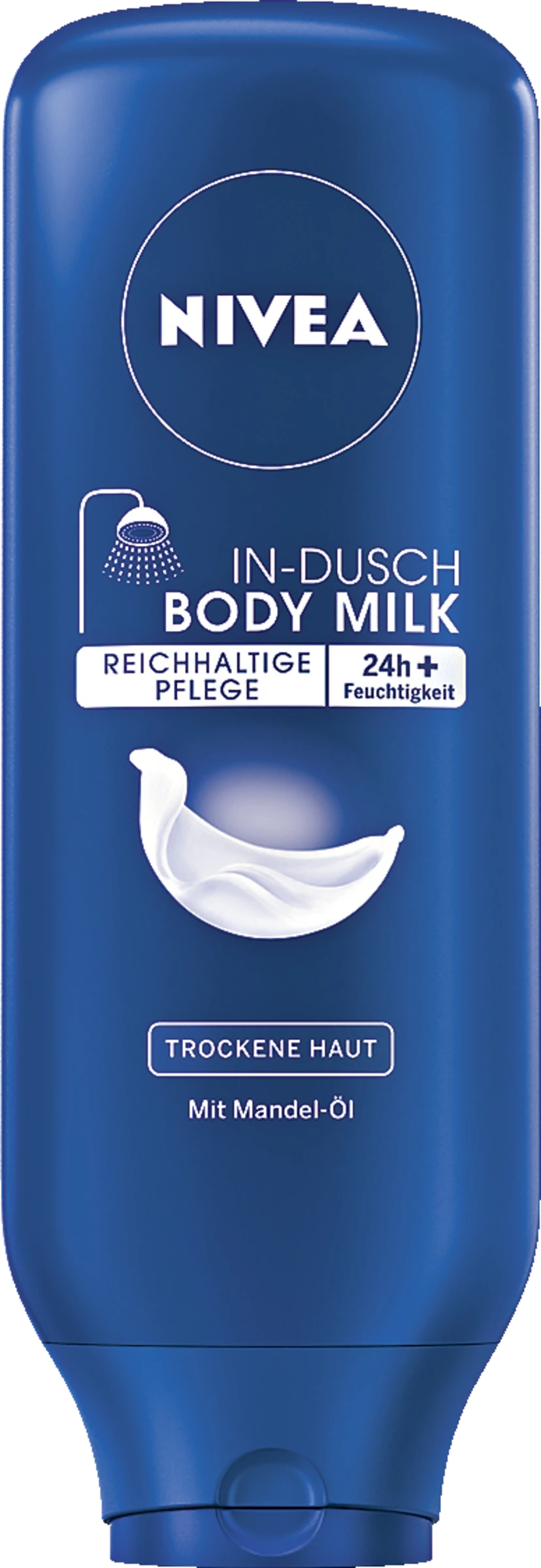 Die pflegende In-Dusch Body Milk spendet Ihrer Haut sekundenschnell Feuchtigkeit und zieht schnell ein. Die einzigartige – durch Wasser aktivierte – Formel verleiht ein geschmeidiges und gepflegtes Hautgefühl direkt nach der Dusche. Zusätzliches Eincremen mit einer normalen Body Milk ist nicht mehr nötig: NIVEA In-Dusch Body Milk.