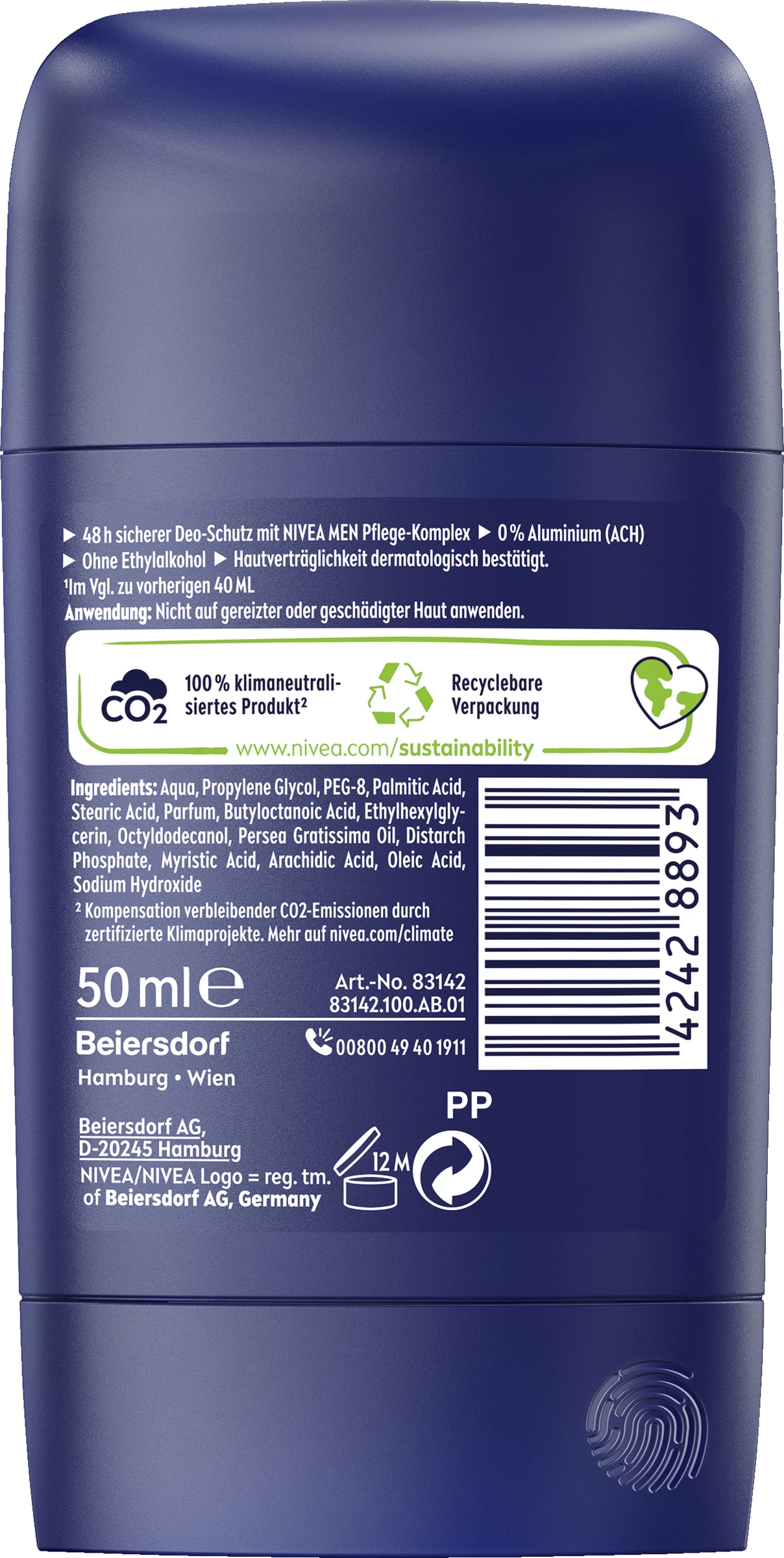 Der NIVEA MEN Fresh Active Stick bietet sicheren Deo-Schutz ohne Aluminium (ACH) – 48 Stunden lang. Die Formel mit Meeresextrakten sorgt für ein langanhaltendes, natürliches Frischegefühl. Der Stick ist in einer zu 98% recycelbaren Verpackung verfügbar.