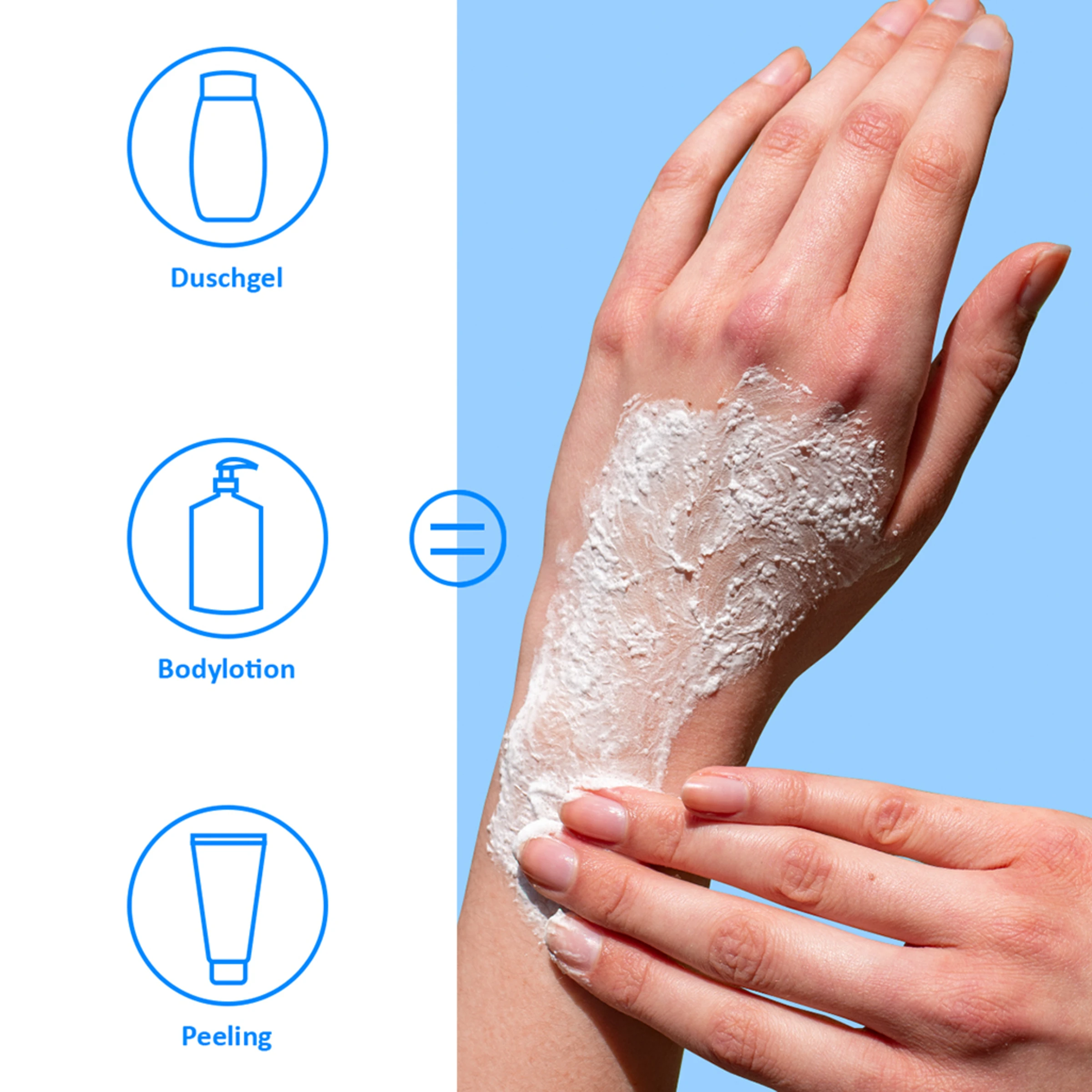 VEREINT DUSCHGEL, PEELING UND BODYLOTION IN EINEM PRODUKT!