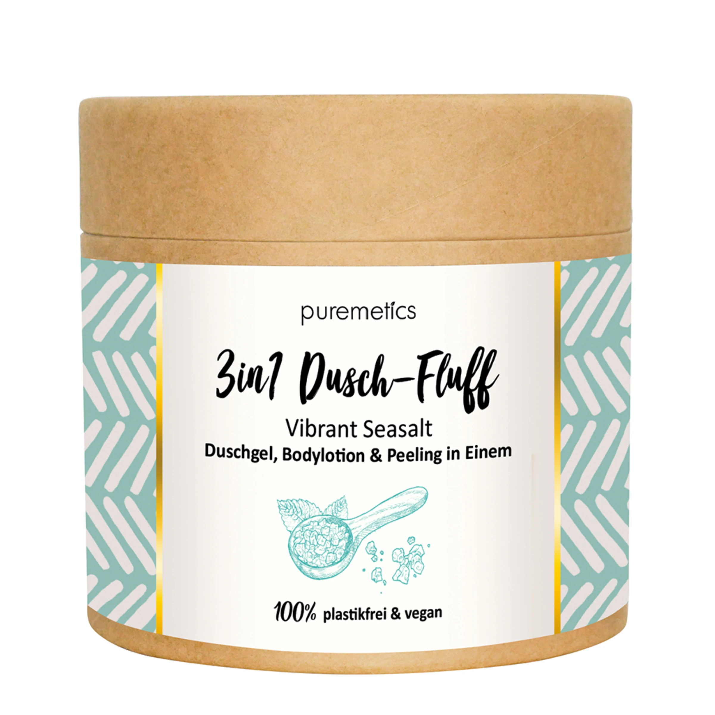 Die Verpackung ist biologisch abbaubar und besteht aus Kraftkarton mit einer wasserdichten Membran. Bewahre sie bitte trotzdem trocken auf. Am besten entnimmst du vor dem Duschen etwas Dusch-Fluff mit einem Löffel oder Schälchen für den Nassraum.