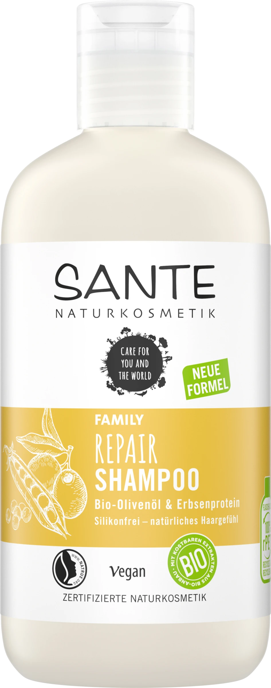 Das SANTE FAMILY Repair Shampoo mit Bio-Olivenöl und Erbsenprotein für strapaziertes und geschädigtes Haar pflegt und verbessert die Haarstruktur. Die natürlich wirksame und milde Reinigungsformel stärkt und glättet das Haar.