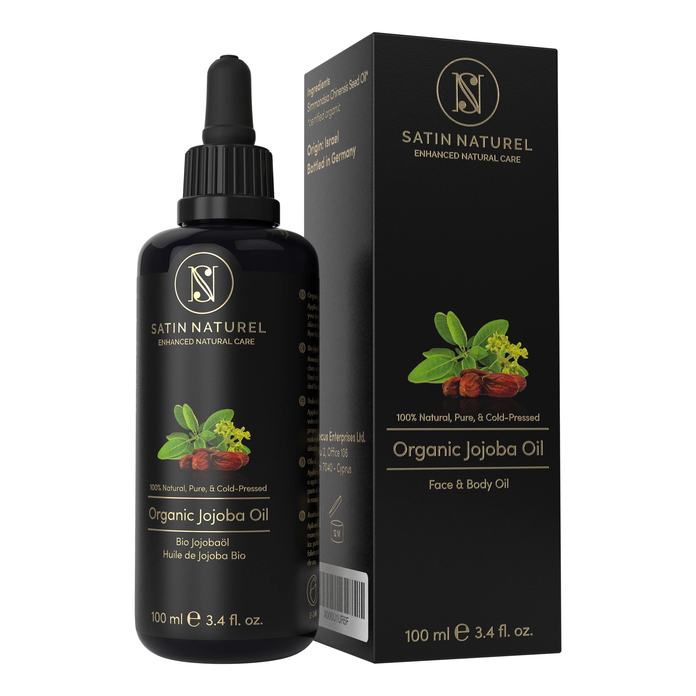 100% pures Jojobaöl – Nur ein Inhaltsstoff, der durch seine Vitamine, Mineralien und Omega-Fettsäuren nachhaltige Feuchtigkeit spendet und die Haut sichtbar glatter und straffer erscheinen lässt. Wirksam gegen Hautunreinheiten und bei der Minderung von Unebenheiten.