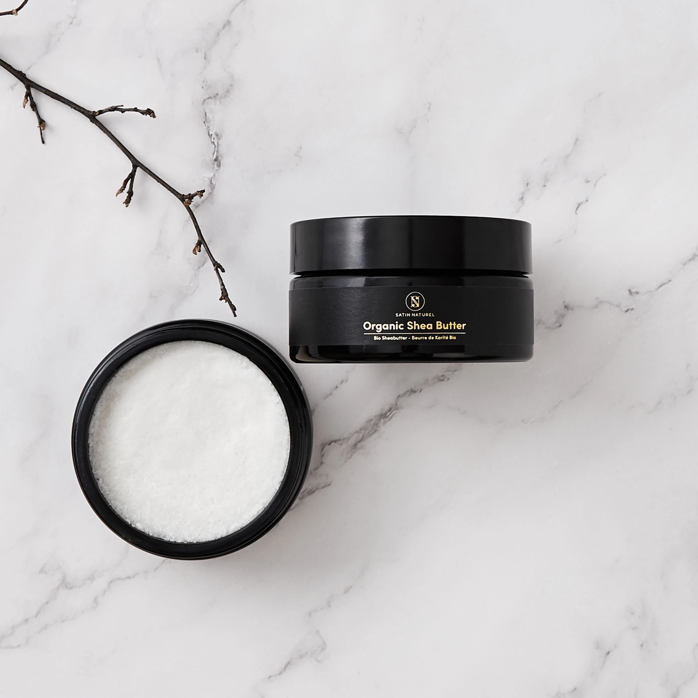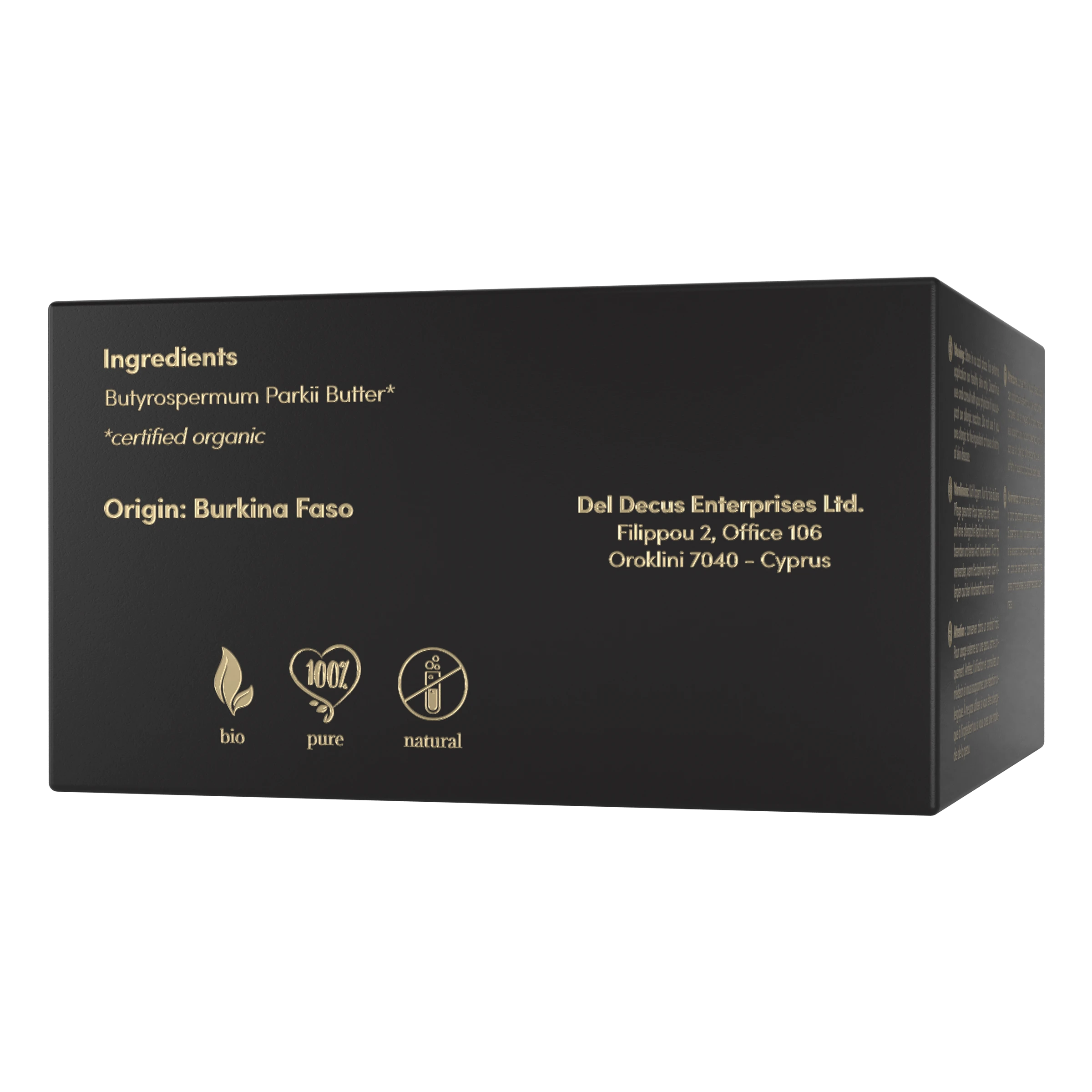 100 % pure Sheabutter – Spendet langanhaltende Feuchtigkeit und mildert sehr trockene Hautstellen. Nach der Kaltpressung wird diese Variante raffiniert, wobei ihre Geruchsneutralität und die weißliche Farbe zustande kommen.