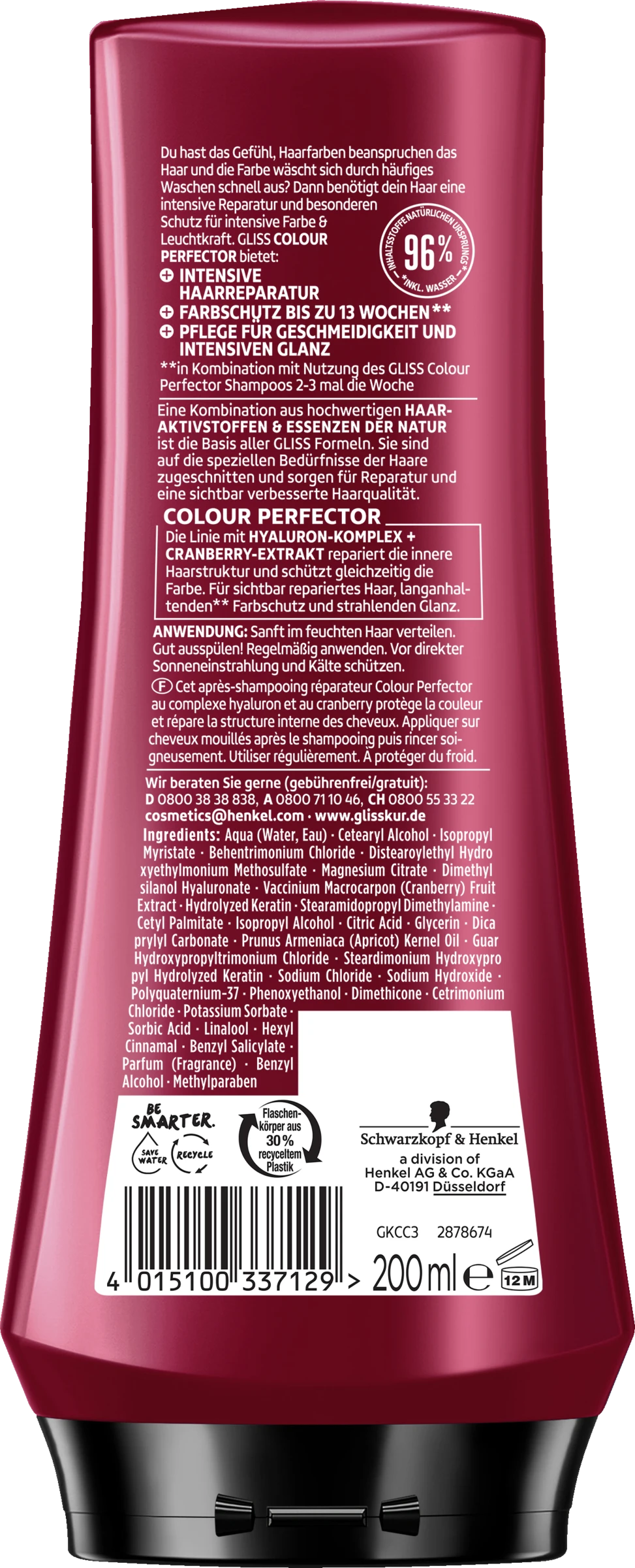 Gefärbtes Haar verliert durch häufiges Haare waschen seine Leuchtkraft. Gefärbtes Haar benötigt daher einen besonderen Schutz für intensive Farbe & Leuchtkraft. GLISS KUR COLOR SCHUTZ & GLANZ bietet: