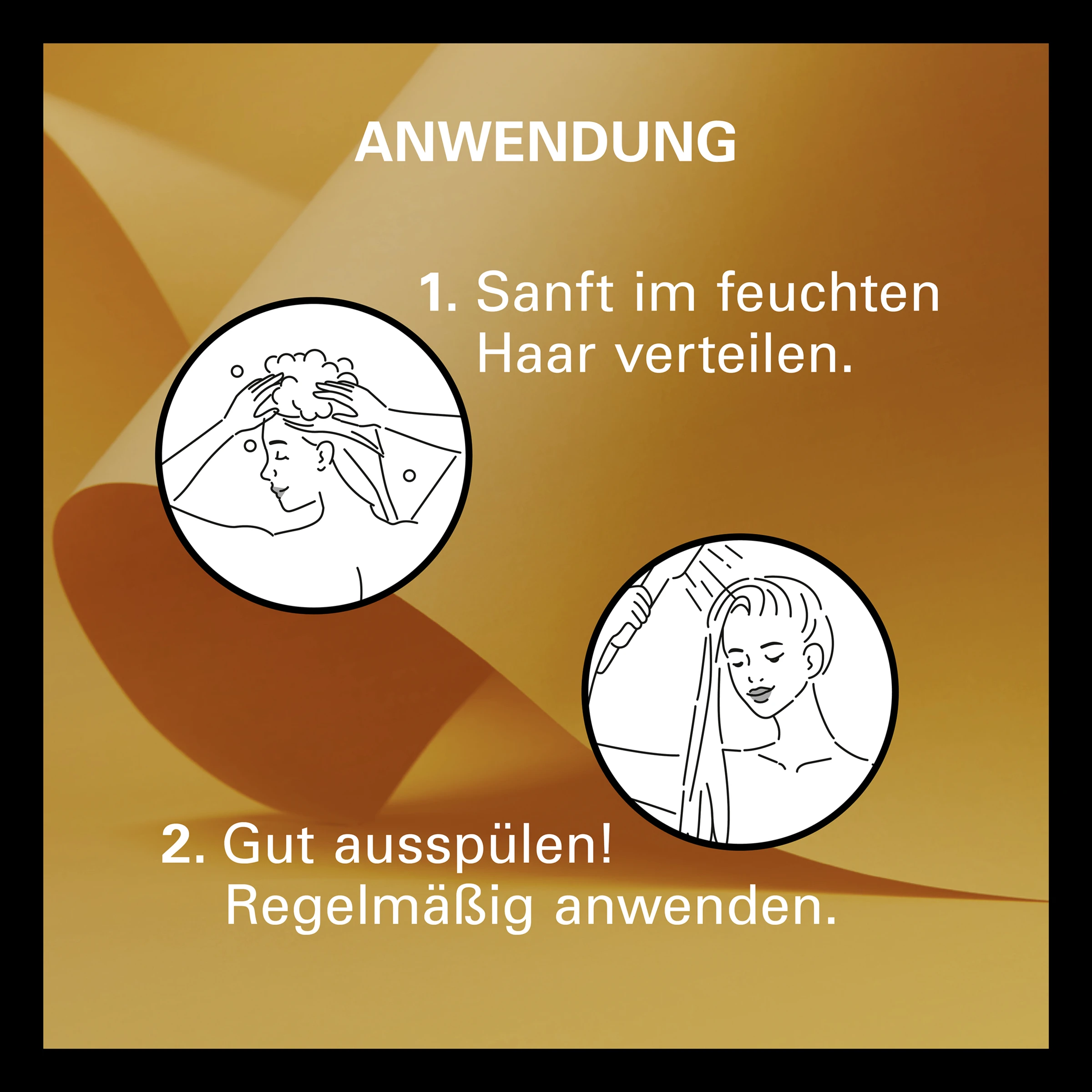 Sanft in feuchtem Haar verteilen. Gut ausspülen! Regelmäßig anwenden.