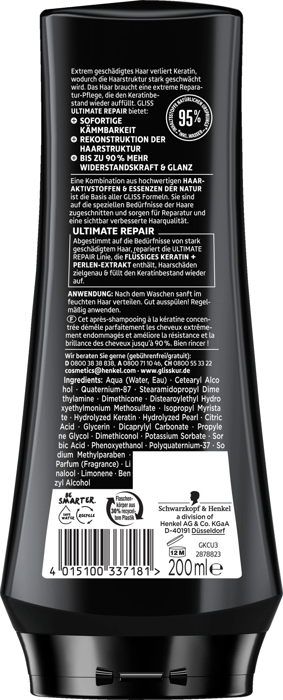 Extrem geschädigtes Haar verliert Keratin, wodurch die Haarstruktur stark geschwächt wird. Das Haar braucht eine extreme Reparatur-Pflege, die den Keratinbestand wieder auffüllt. GLISS KUR ULTIMATE REPAIR bietet: