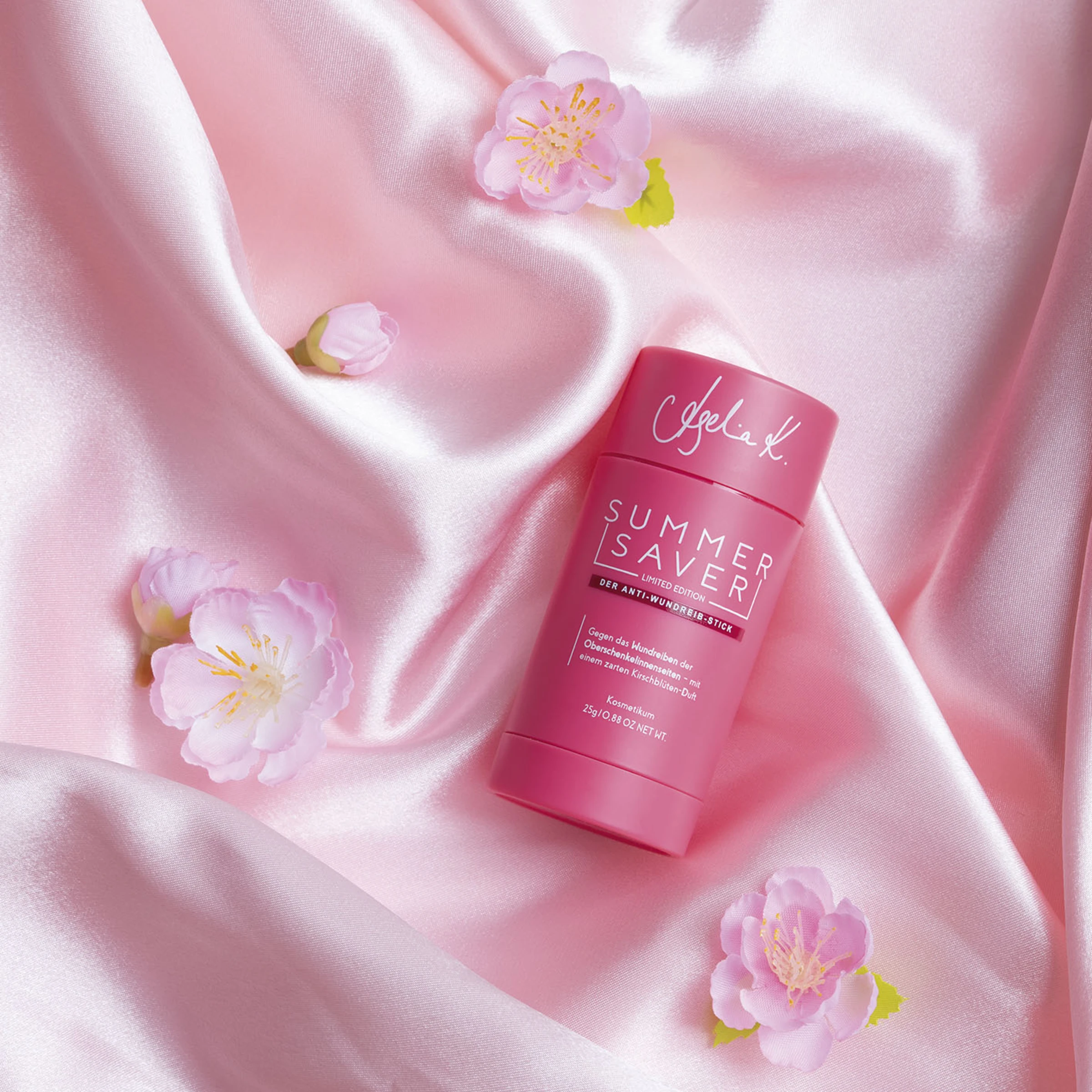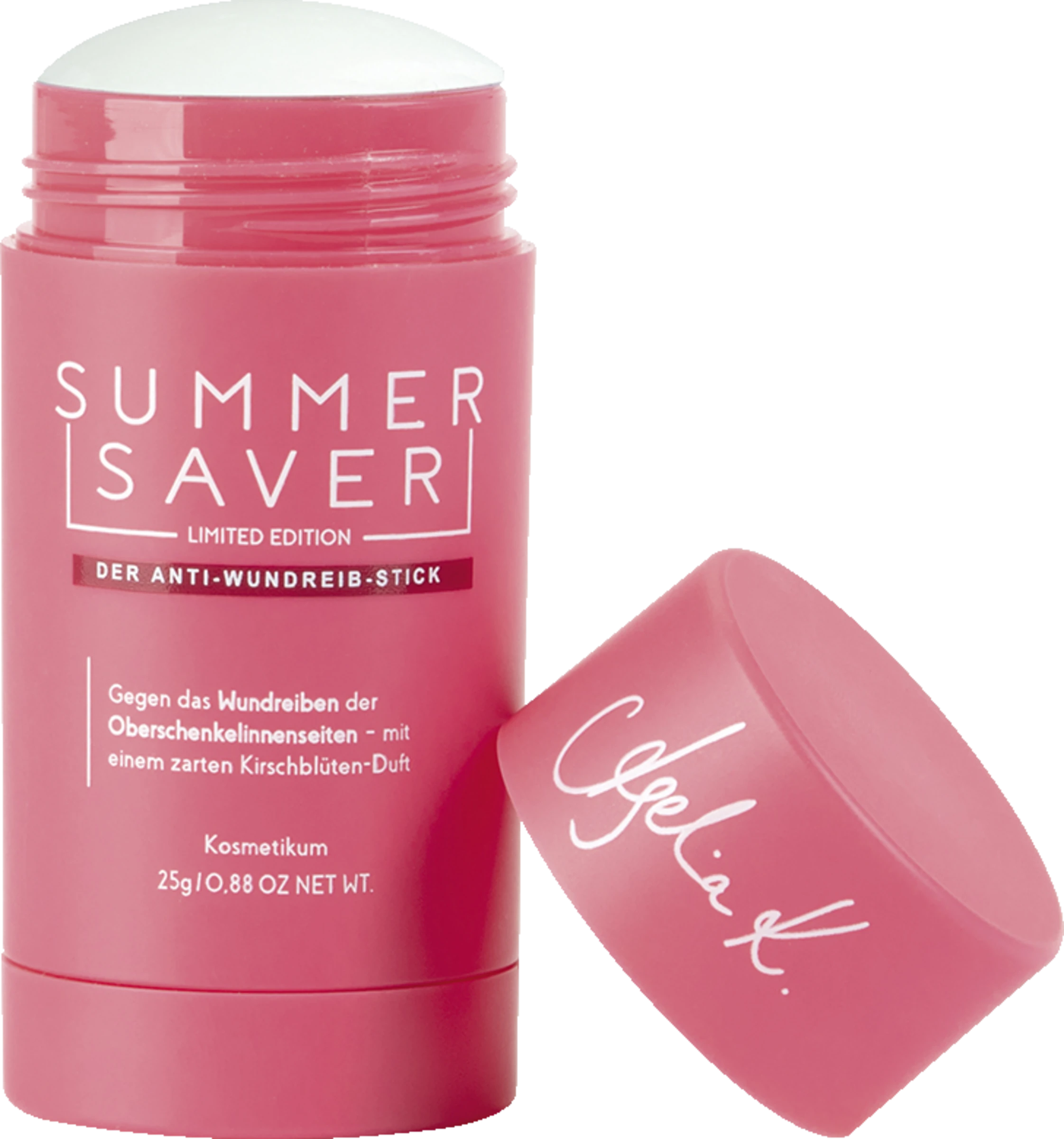 Gerade bei steigenden Temperaturen, wenn die Haut zu schwitzen beginnt, scheuern Stoffe, wie Riemensandalen, BHs oder auch die eigene Haut oft unangenehm. Mit dem SUMMERSAVER Anti-Wundreib-Stick bewahrst du deine Haut vor unangenehmen Wundreibungen. Er lässt sich einfach wie ein Deo-Stick sauber an den Oberschenkelinnenseiten, an den Füßen oder an den BH-Konturen auftragen. Das Kosmetikum pflegt deine Haut mit Mandel- und Kokosöl, spendet Feuchtigkeit und ist frei von Aluminium. Allantoin und Vitamine vermindern zudem Wundreibungen.