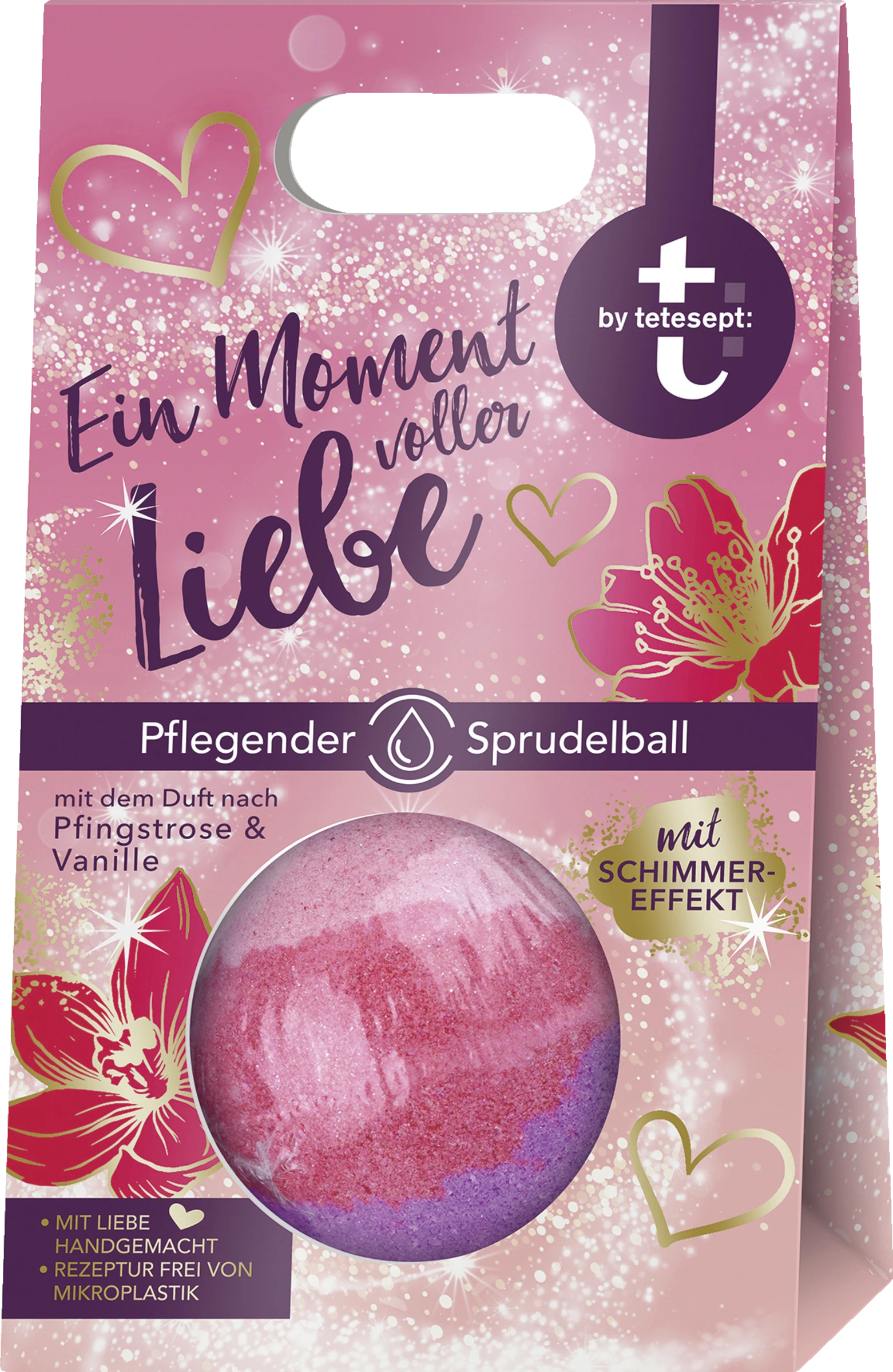 Ein Moment voller Liebe. Lass dich von meinem lieblichen Duft nach Pfingstrose und Vanille verwöhnen. Pflegender Sprudelball mit Schimmer-Effekt. Mit Liebe handgemacht.
